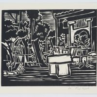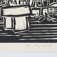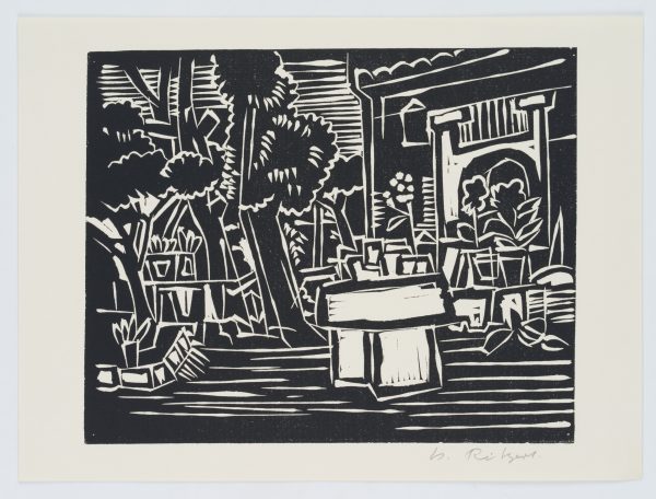 Diether Ritzert (1927 Kamen – 1987 Rüsselsheim), Casa Baldi View of garden and building, c. 1980, Linocut