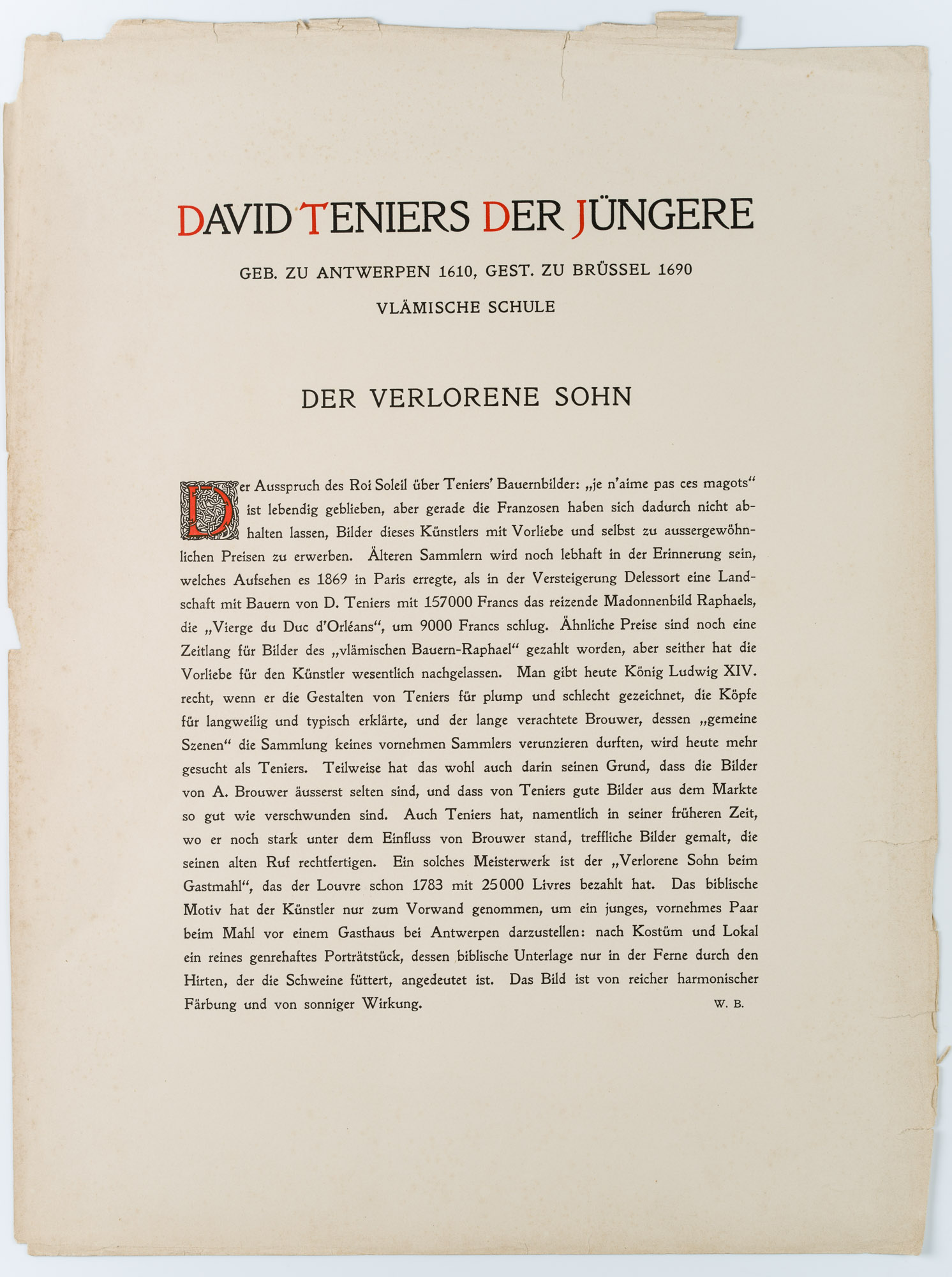 - Beschreibung: Aus dem Katalog: Meisterwerke der Malerei. Alte Meister. Reproductionen in Photogravure. Mit einem Vorwort und begleitendem Text von Wilhelm Bode und Fritz Knapp, Berlin 1905. Beachten Sie dazu weitere Angebote aus dem Meisterwerke-Katalog in unserem Onlineshop. Der Photogravure liegt jeweils der entsprechende Bildtext von Wilhelm Bode auf einem zusätzlichen Blatt bei.