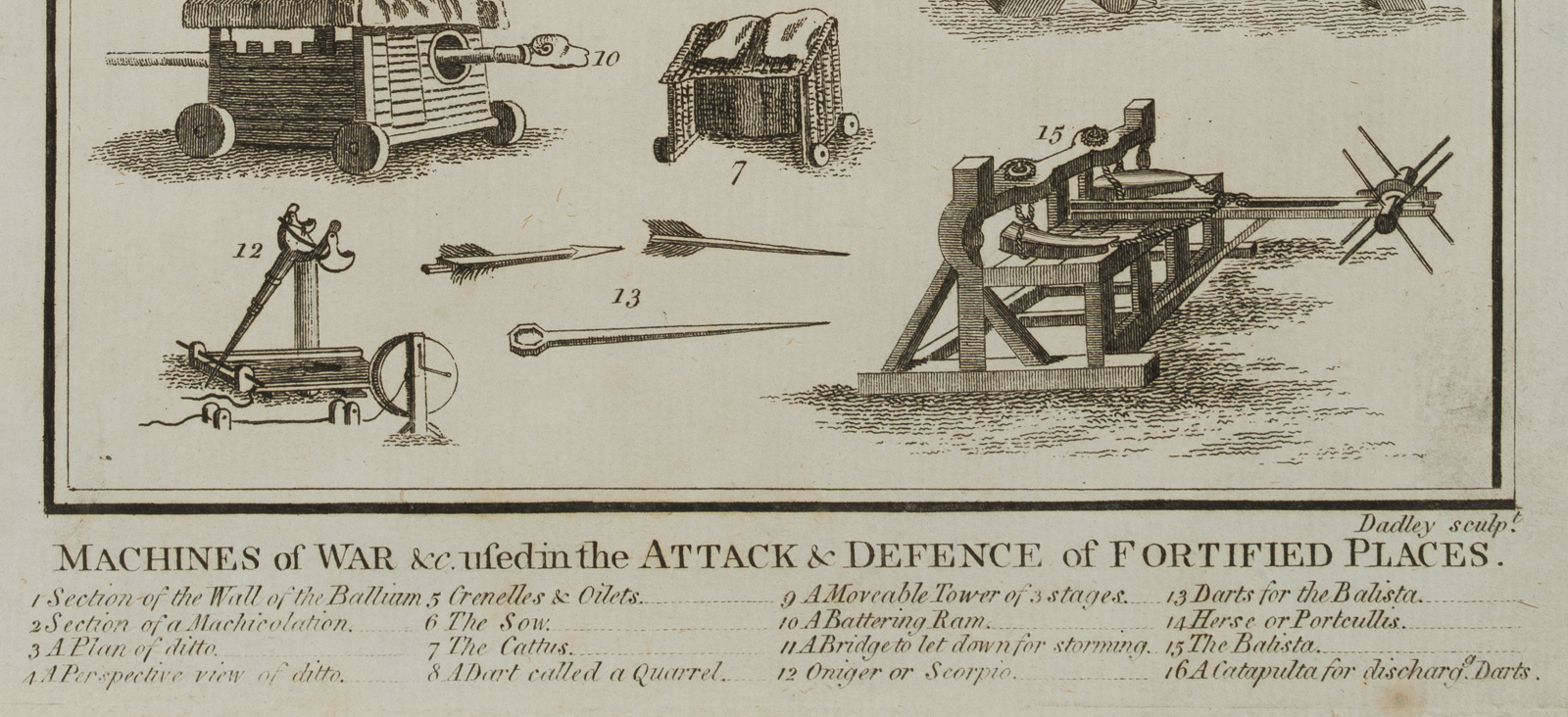 Dadley (18th century), “The Mode in which Antient Castles were generally built”, “Machines of War”, 1786, Etching