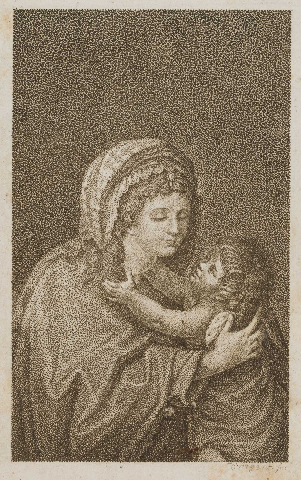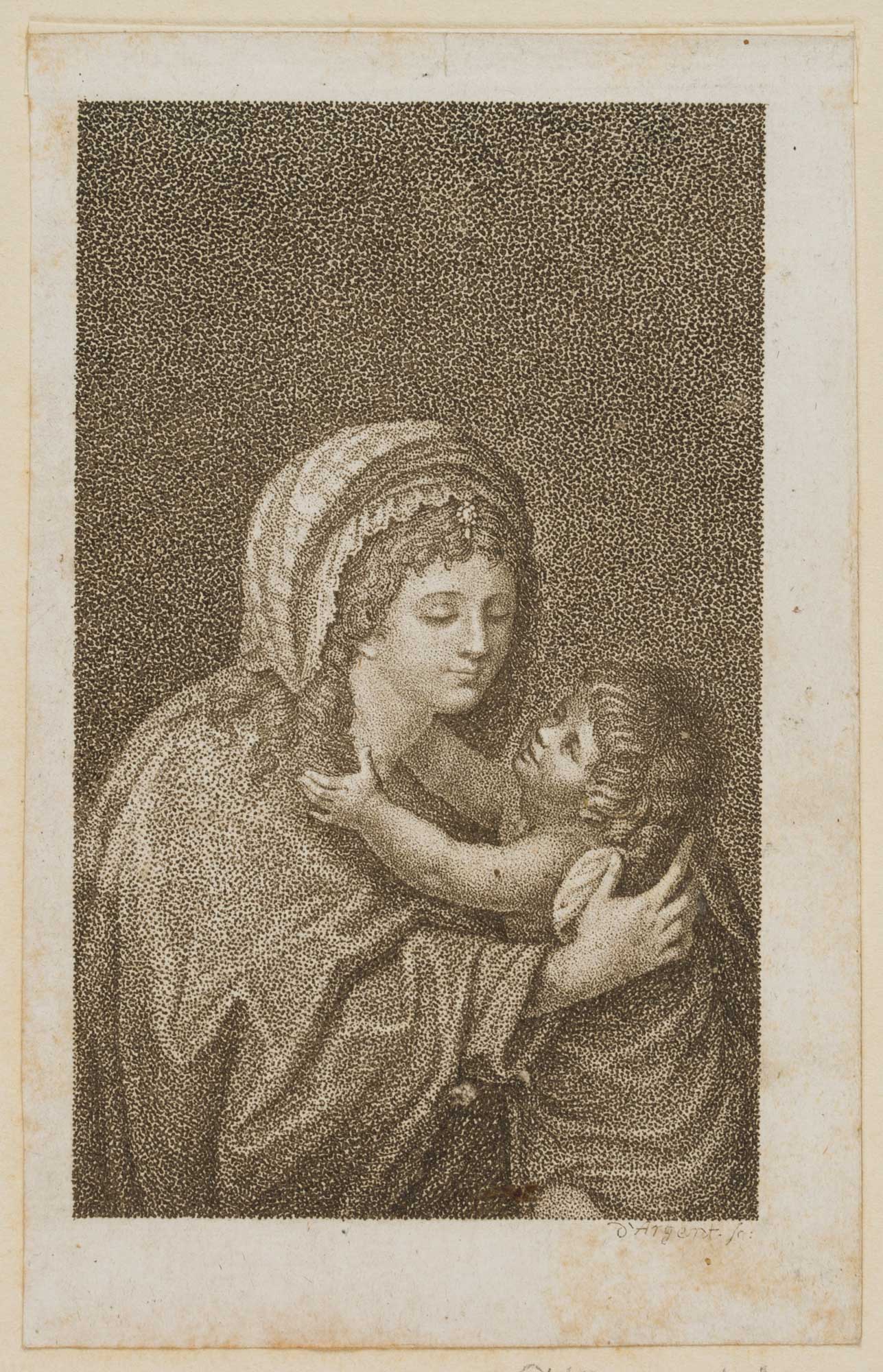 D’Argent (18th century), Heartfelt embrace – mother with small child, c. 1800, Crayon manner