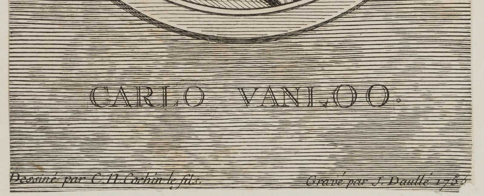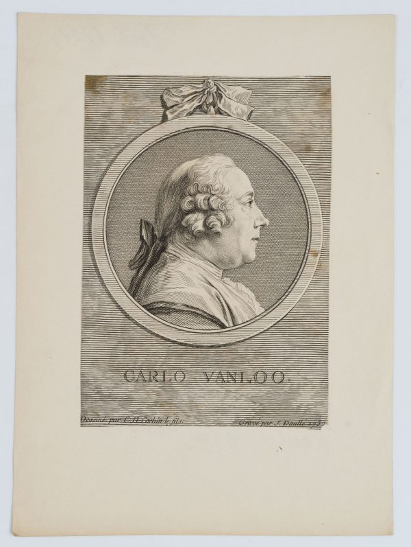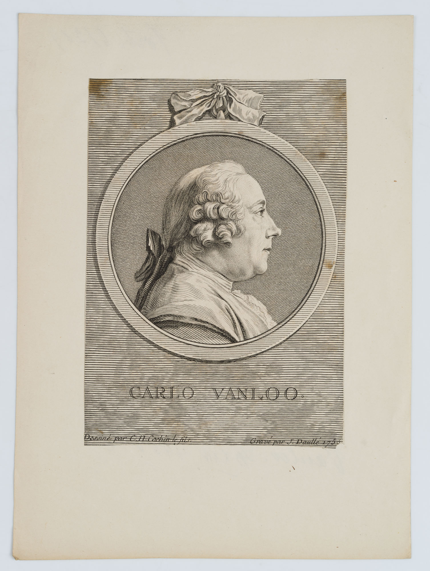 Jean Daulle (1703 – 1763 ) after Charles-Nicolas Cochin jun. (1715 Paris – 1790 ibid.), Portrait of the French painter Carlo Vanloo (1705 Nice – 1765 Paris), oval bust in profile to the right, 1756, Copper engraving