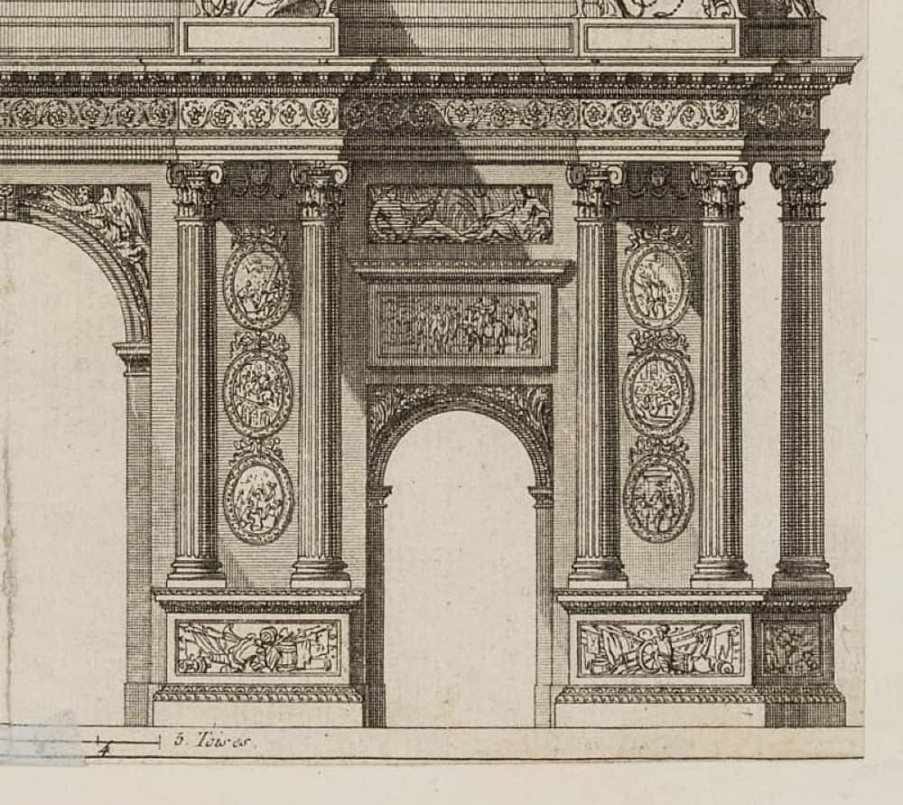 • Description: Elevation with details of architectural decoration. With scale.