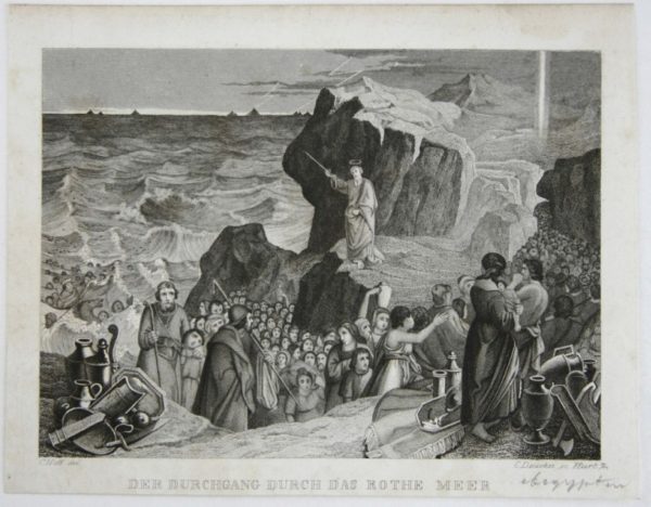 Carl Deucker (1801 Niederzündorf – 1863 Frankfurt on the Main) after Carl Hoff (1807 Frankfurt on the Main – 1862 Dresden), People of Israel and Moses in the Red Sea, 19th century, Steel engraving