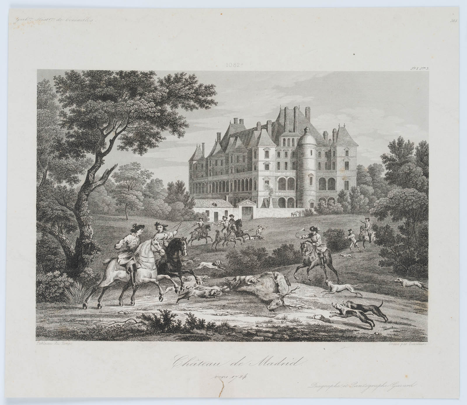 Devilliers (19th century), “Château de Madrid vers 1724”, The Castle in Madrid circa 1724, No 1082, 19th century, Steel engraving