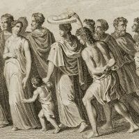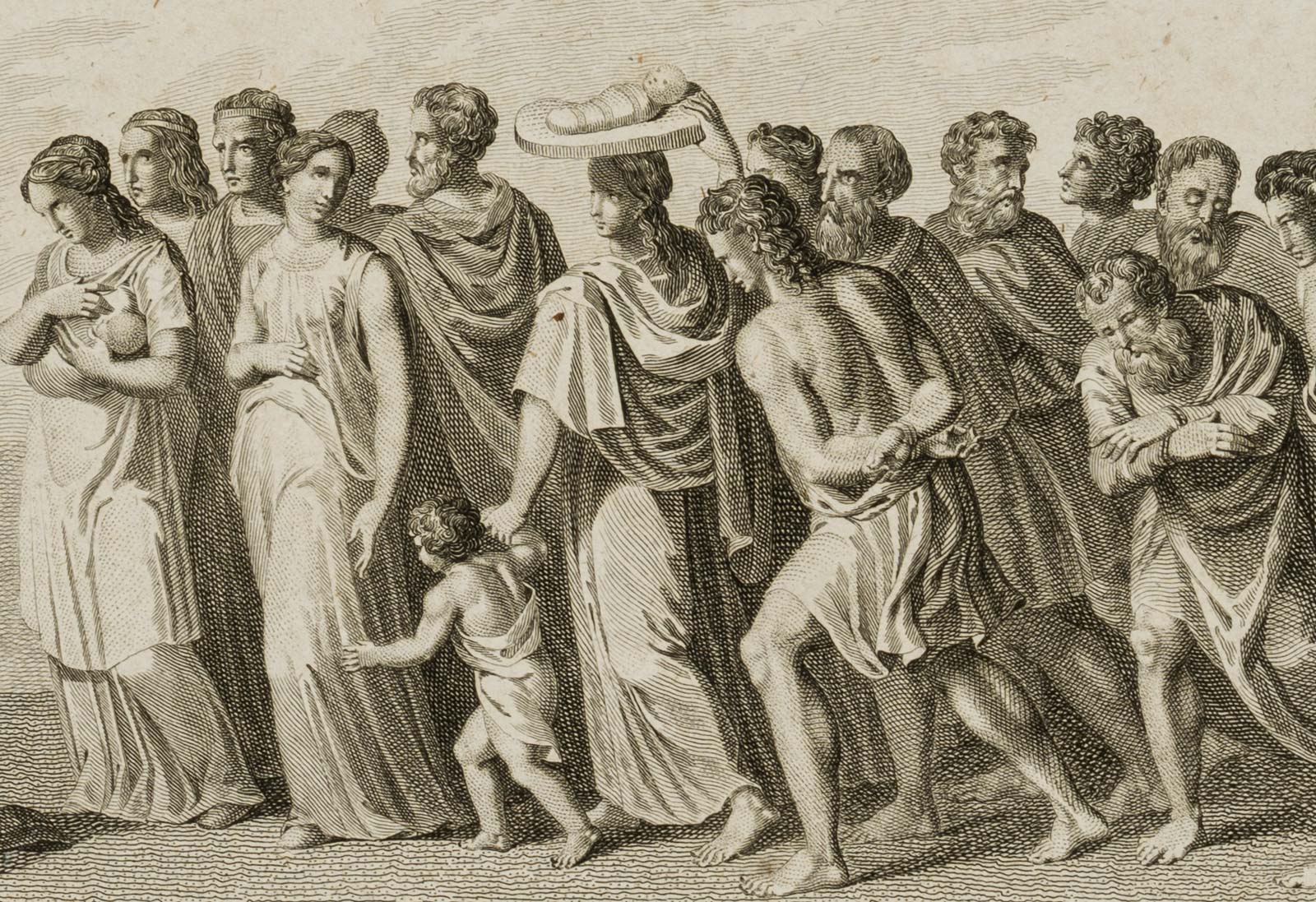 Georg Döbler (1788 Prague – 1845 Prag) after A Friese (19th century), King and prisoner, vassal, Rome, antiquity, Syria, bondage, 1819, Copper engraving