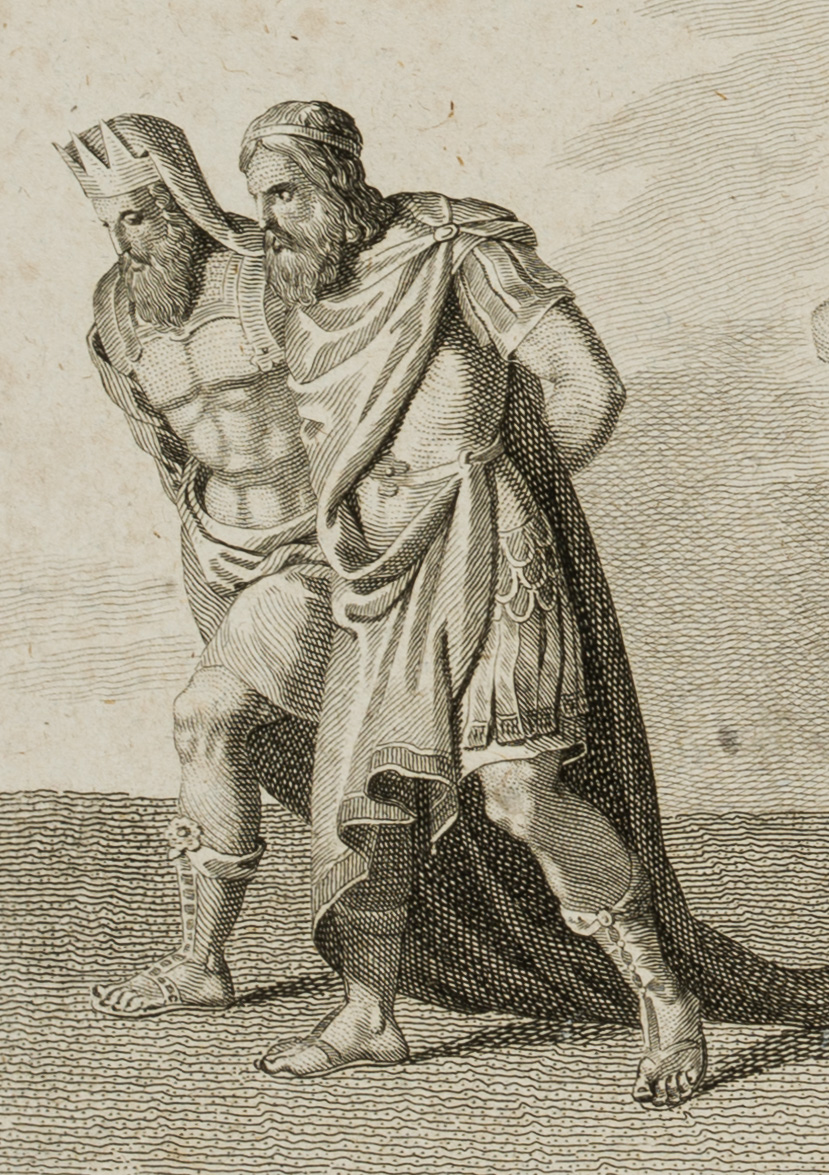 Georg Döbler (1788 Prag – 1845 ebd.) nach A Friese (19. Jahrhundert), König und Gefangener, Vasall, Rom, Antike, Syrien, Fessel, 1819, Kupferstich