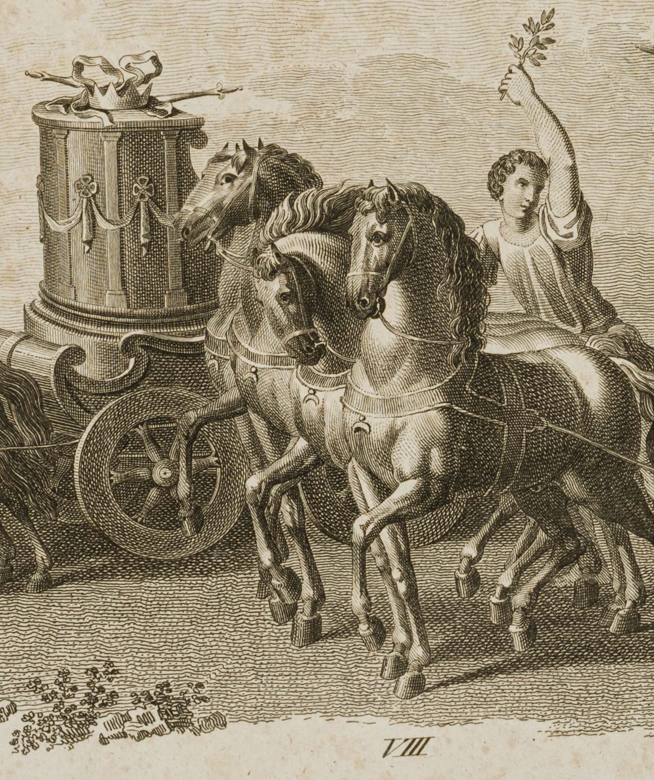 Georg Döbler (1788 Prag – 1845 ebd.) nach A Friese (19. Jahrhundert), Römischer Triumphzug, Sieg, Tribut, Krone, Schwert, Streitwagen, Militär, 1819, Kupferstich
