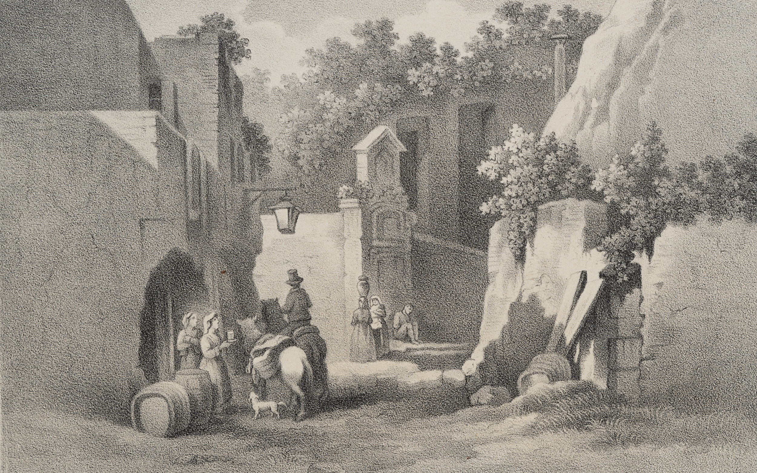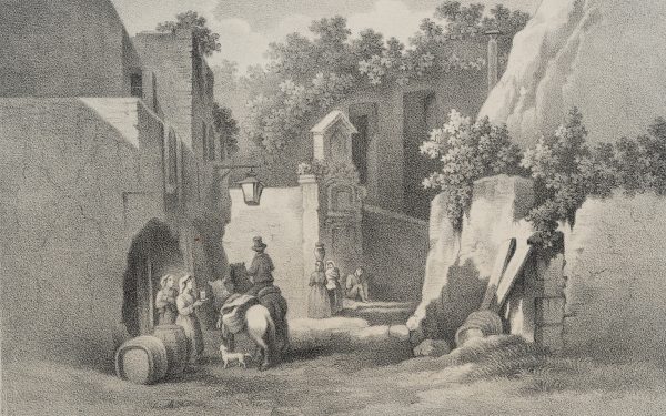 - Keywords: Virgil, Vergil, Naples, Posillipo, Tomb, Poet, Village, Rural, Picturesque, Ruin, Italy, Southern Italy, Rider, Horses, Dog, Barrel, Jug, Lantern, 19th century, Romanticism, Landscape, Italy,