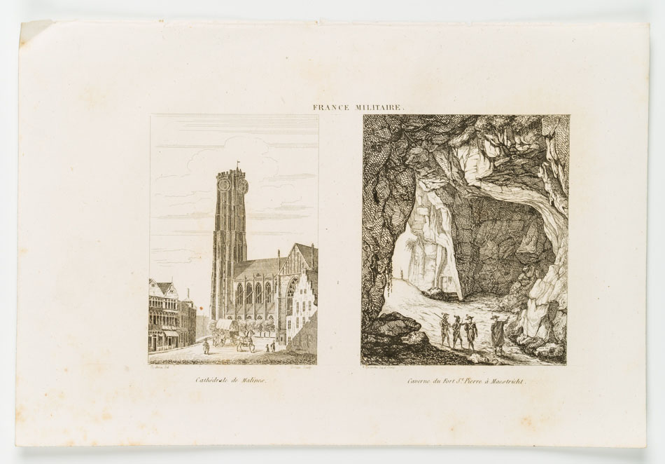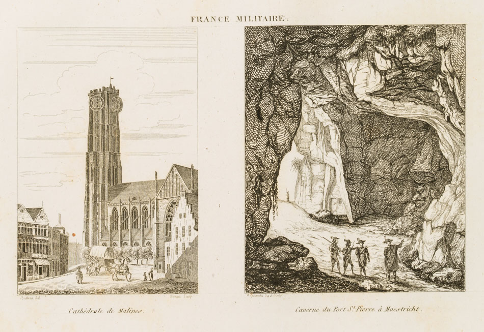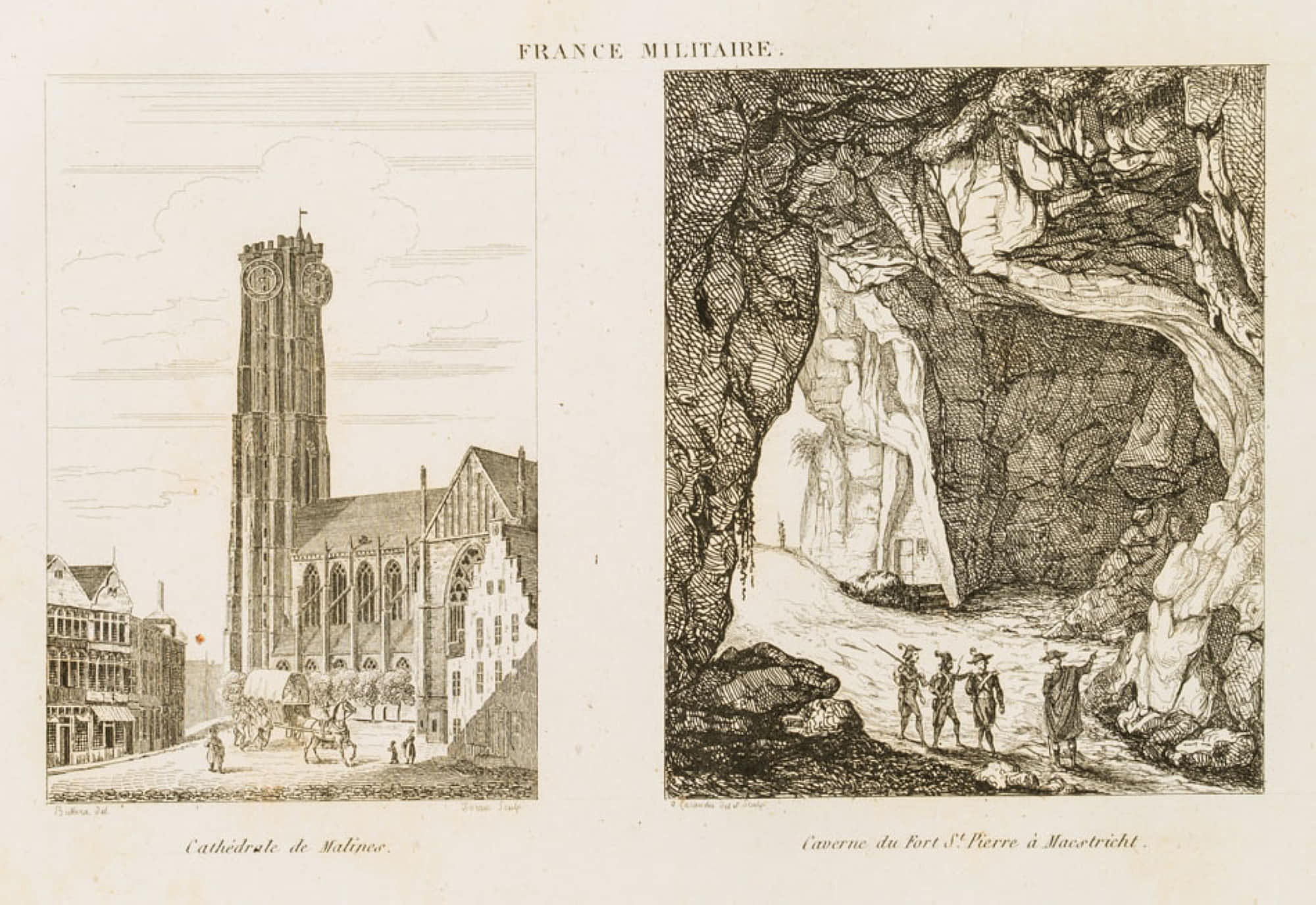 • Inscription: Oben betitelt: “France militaire. Unten signiert und betitelt: “Cathedral of Mechelen” und “Cavern of Fort St. Peter in Maastricht.