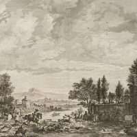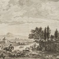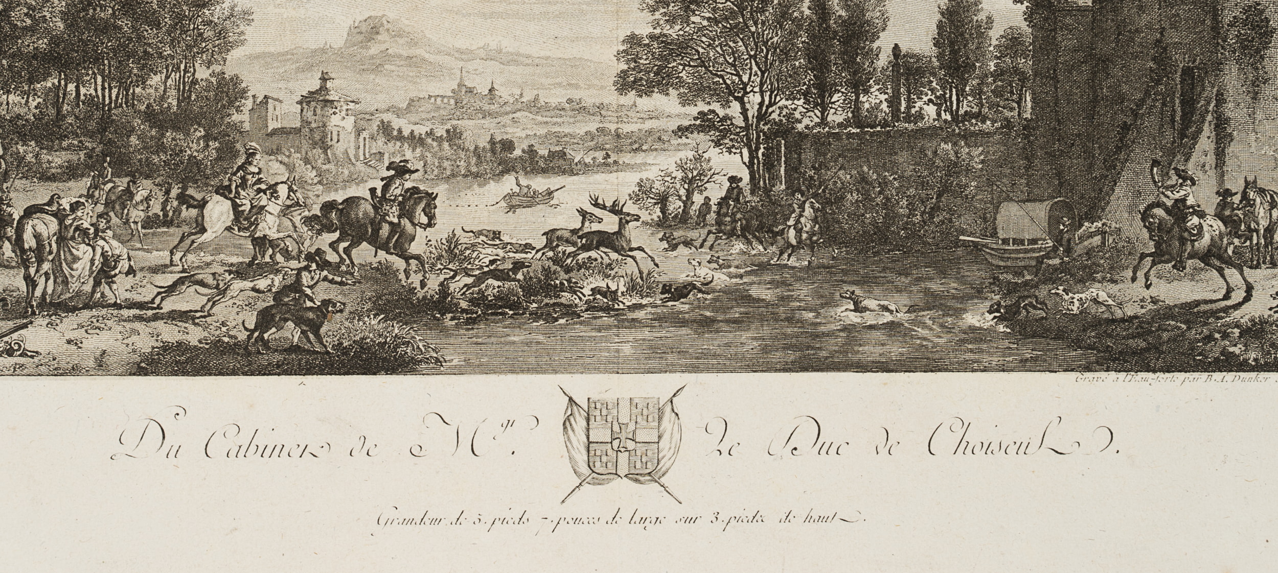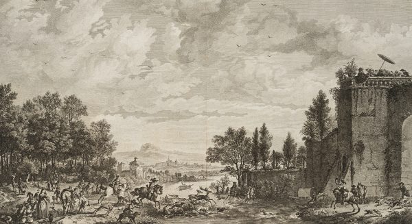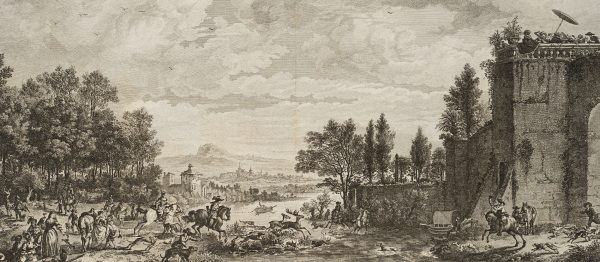 Balthasar Anton Dunker (1746 Hall near Stralsund – 1807 Bern) after Philips Wouwerman (1619 Haarlem – 1668 ibid.), Deer hunting by the river, 1772, Etching