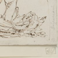 - Inscription: On the old backing is the collection stamp of Arthur Louis Sellier (Lugt 142a) “ALS”. Inscribed in pencil on a separate strip of the old backing at the bottom: Original pen-and-ink drawing by Duperaux lives in Geneva”.