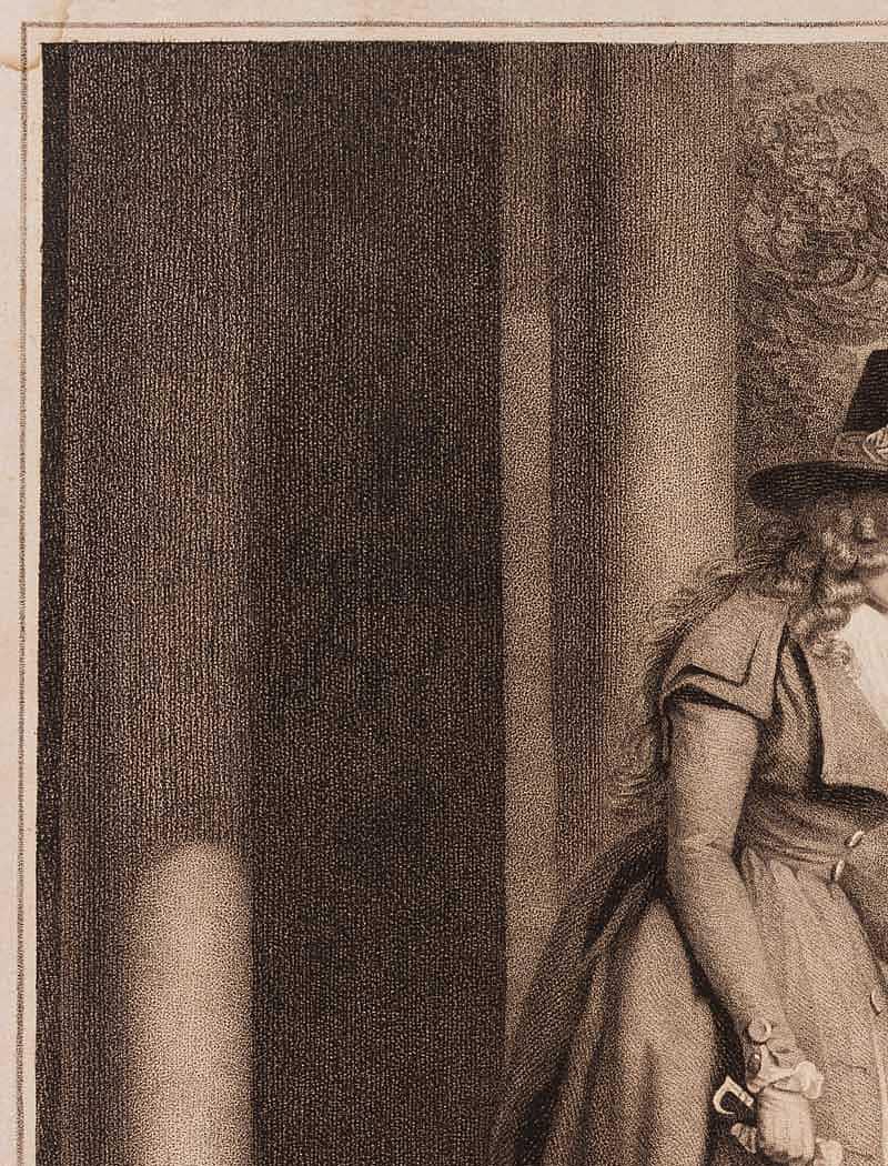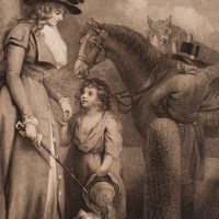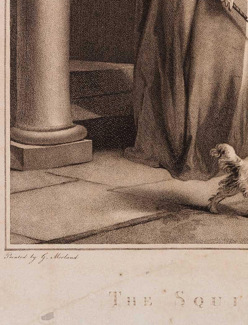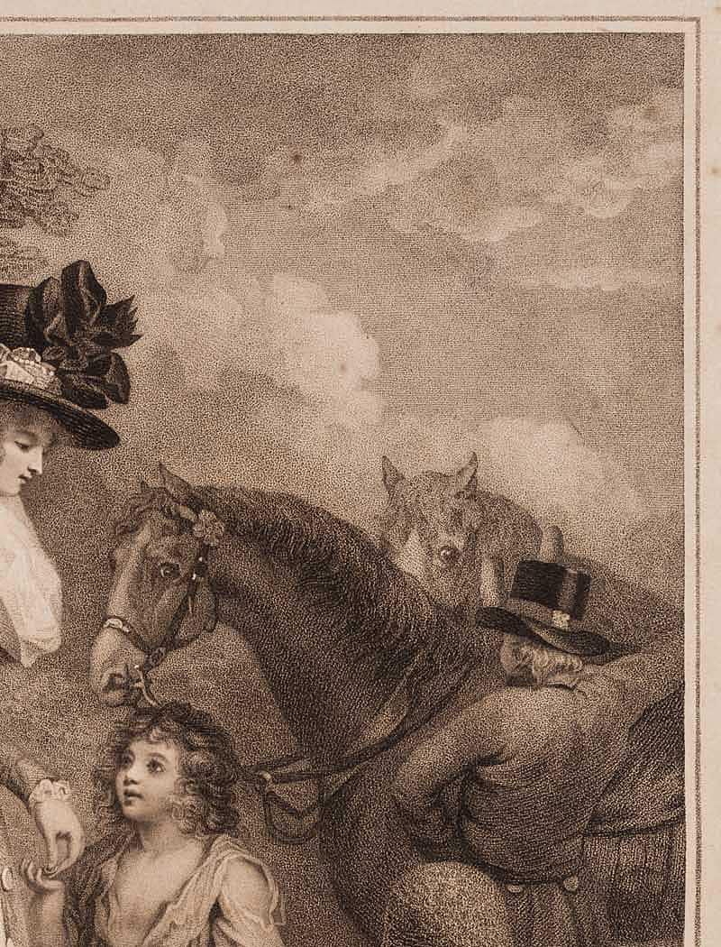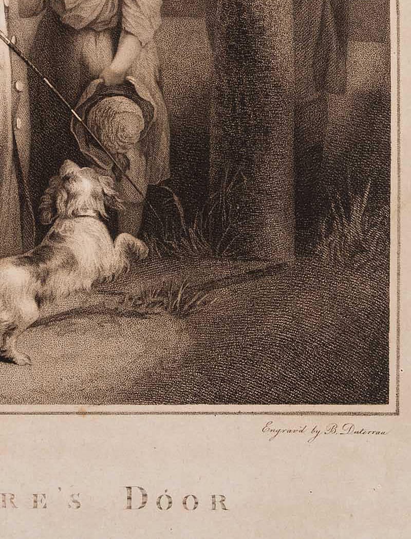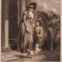 Benjamin Duterreau (1767 London – 1851 Hobart) after George Morland (1763 – 1804 ), The Squire’s Door, Squire’s Gate, Ride of a Noble Lady, 19th century, Stipple engraving
