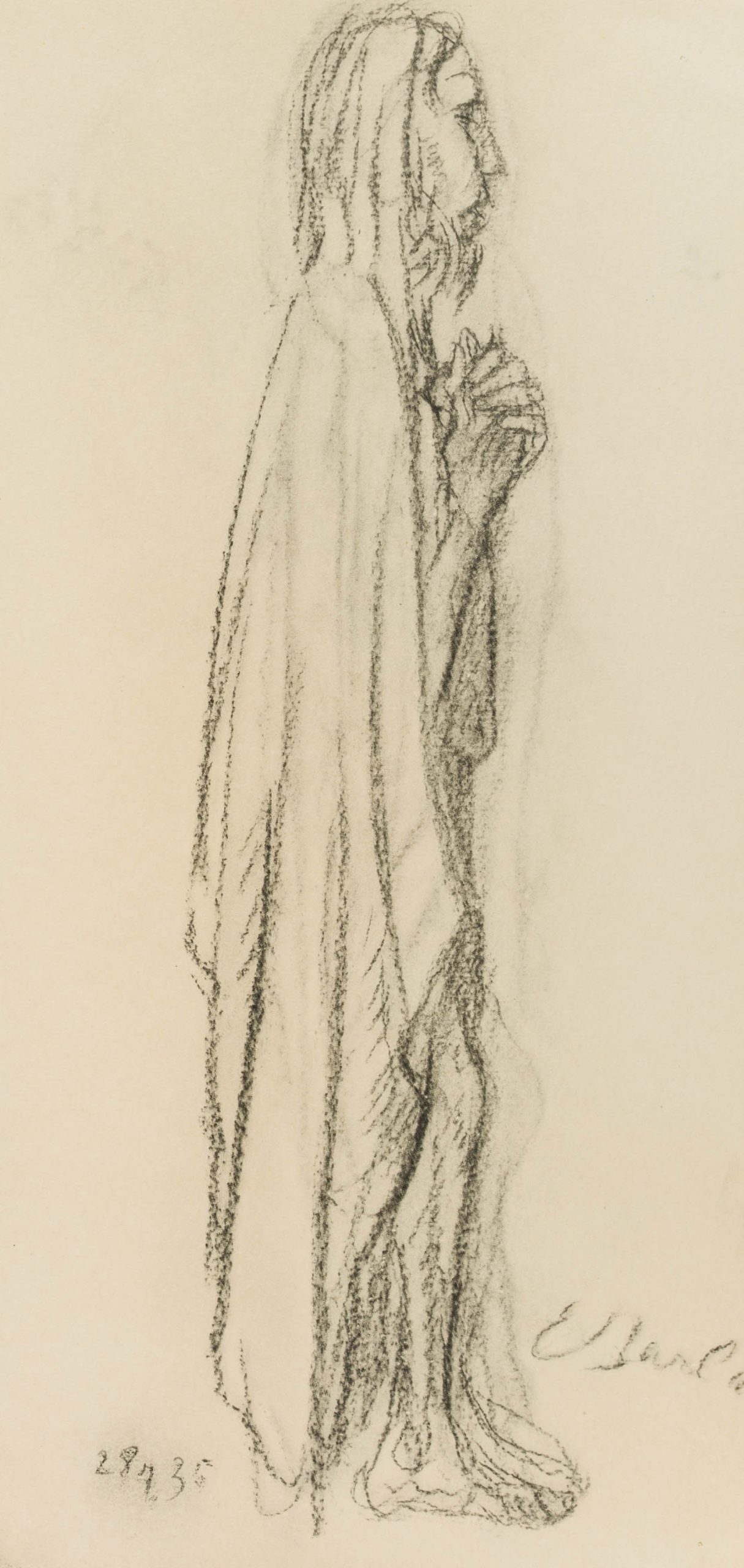 • Bezeichnung: Unten im Druck bezeichnet: “EBarlach”, einzeln datiert “27.7.1935”, “28.7.1935”. Rechts im Profil dargestellt ein weiterer Mann, die Hände zum Gebet gefaltet.