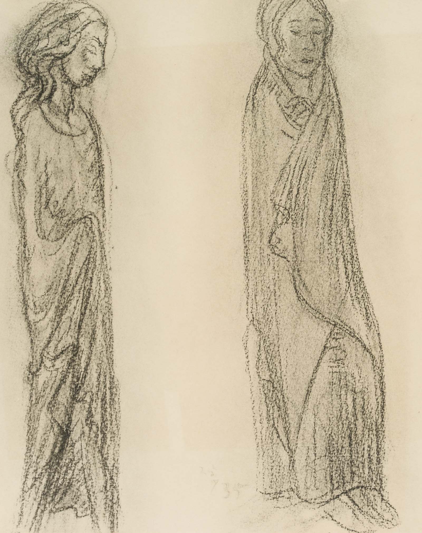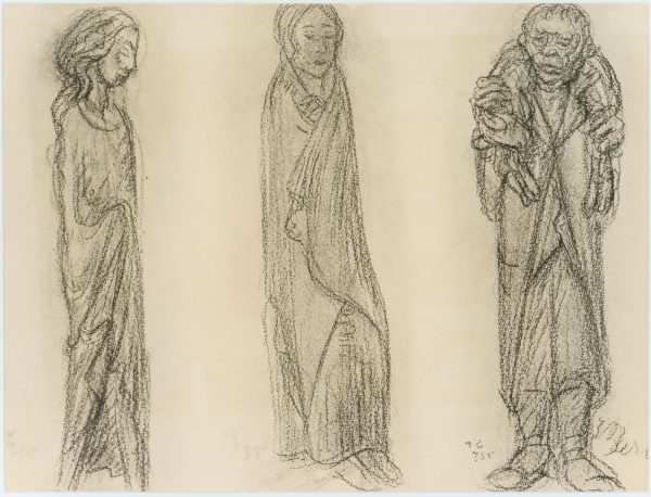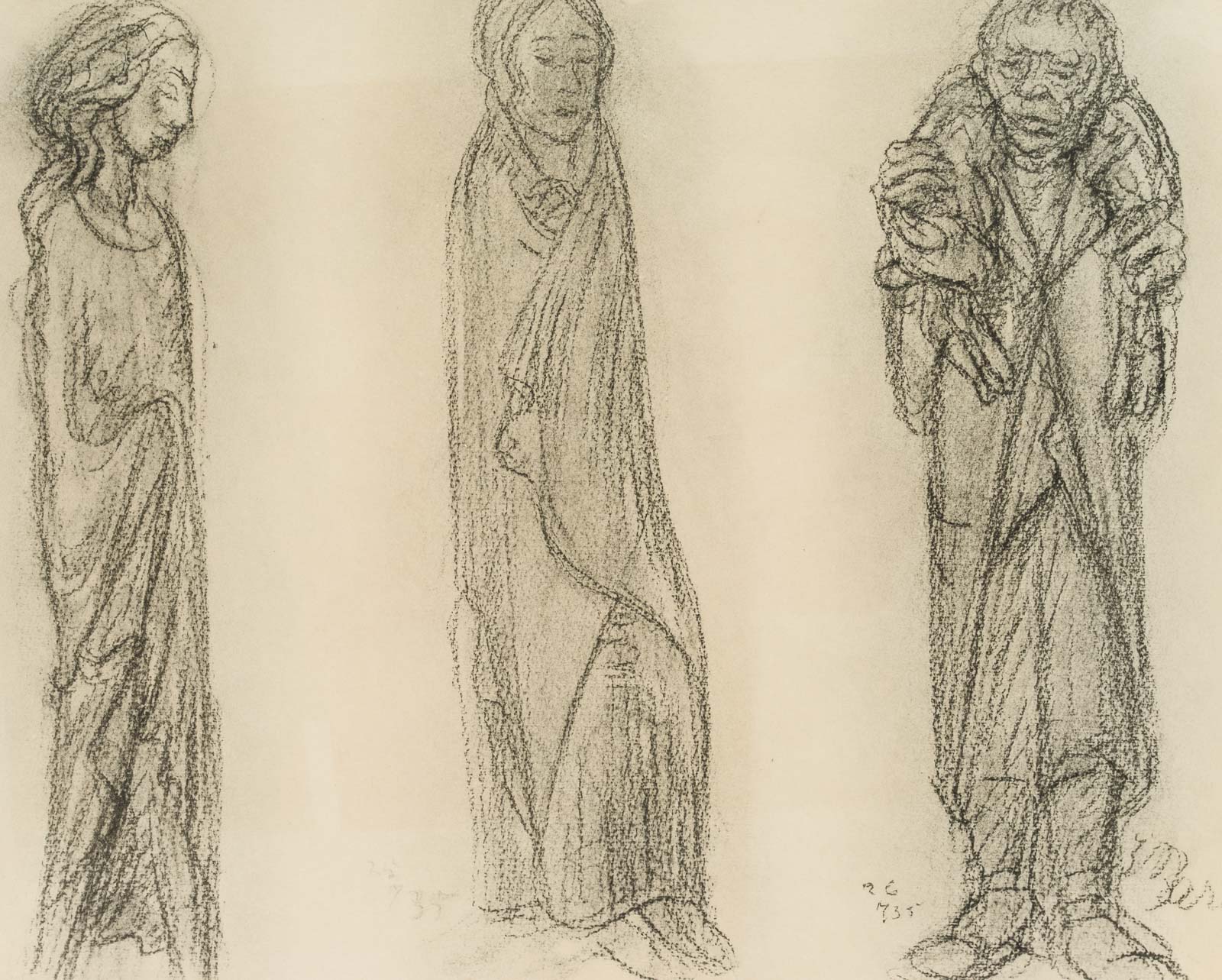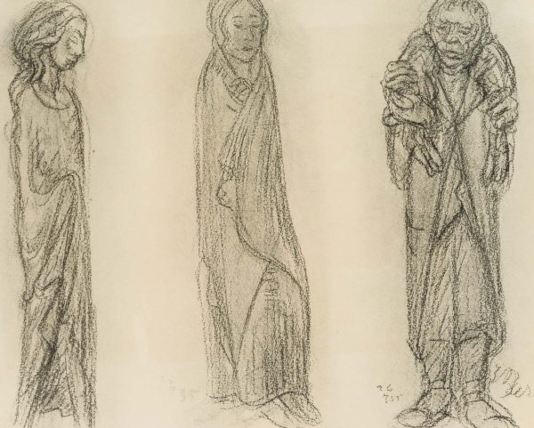 Ernst BARLACH is particularly famous for his sculptures and bronzes. However, numerous drawings by the artist have also survived, not all of which are intended to be understood as preliminary studies for a sculptural work. In the portfolio “Übungen der leichten Hand” (Exercises of the Light Hand) Barlach assembled 19 sheets showing standing figures, singly, in pairs or in small groups. The title of the portfolio has been handed down and was published in 1965 by VEB Verlag der Kunst Dresden.