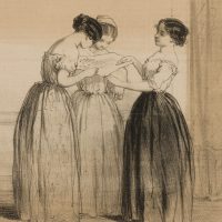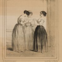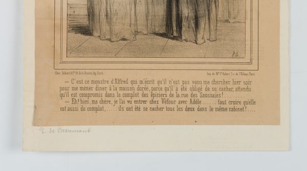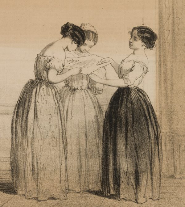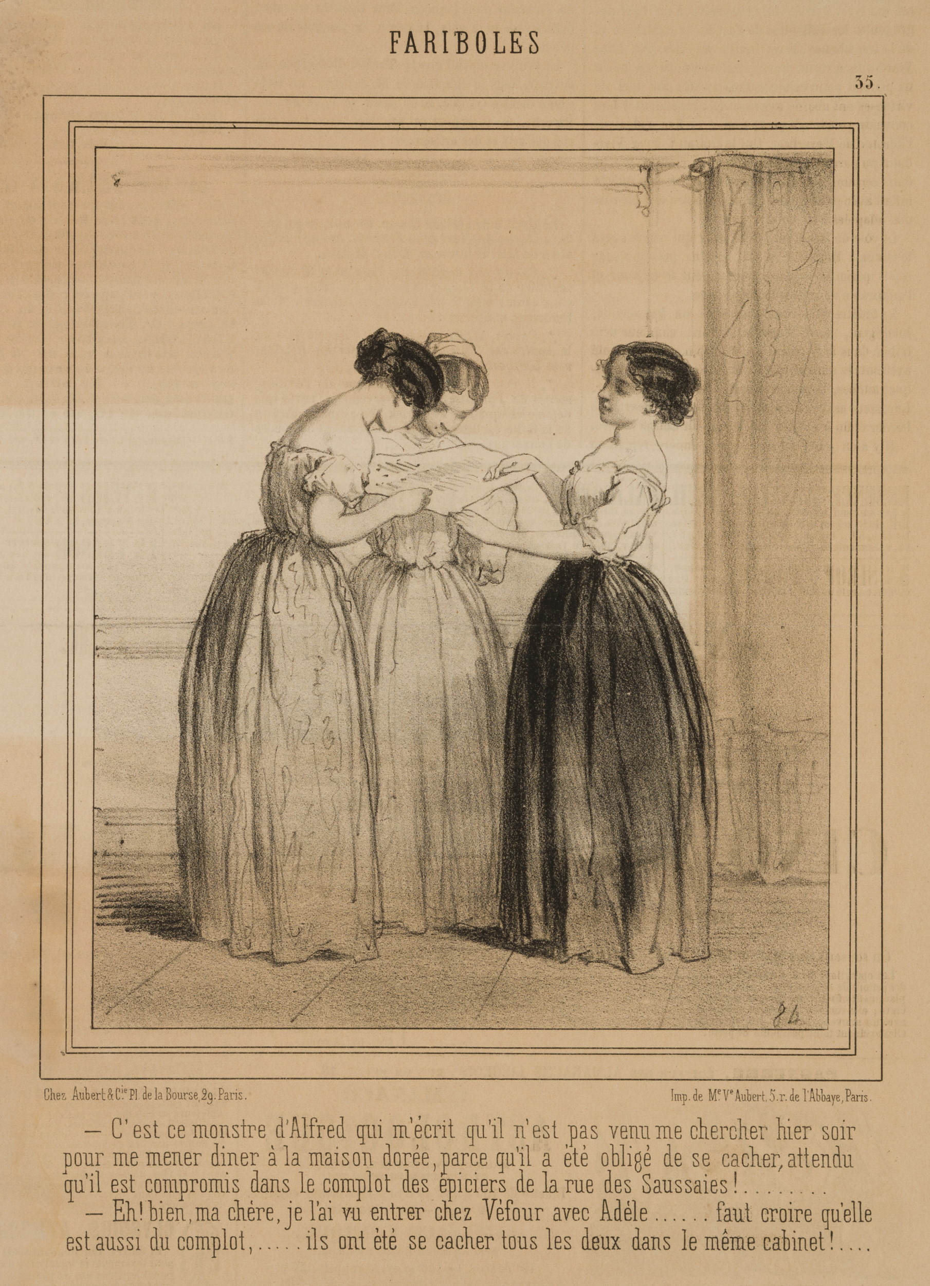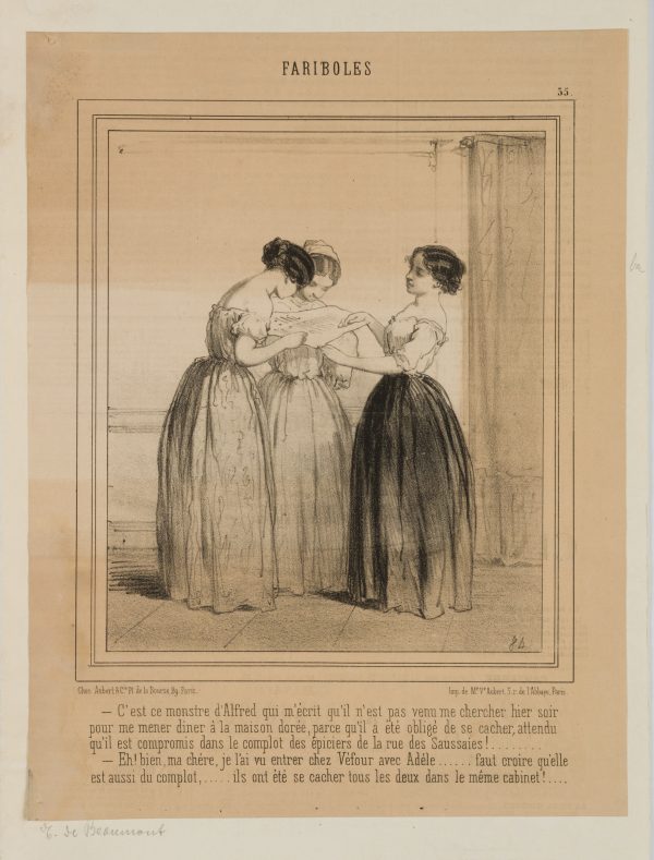 Edouard de Beaumont (1821 – 1888 ), Caricature Three ladies b reading a message, , Lithography