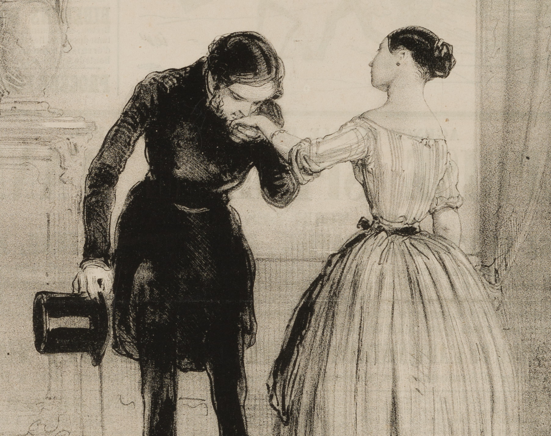 Edouard de Beaumont (1821 – 1888 ), Caricature Hand kiss, , Lithography