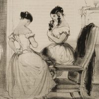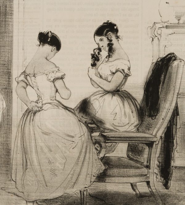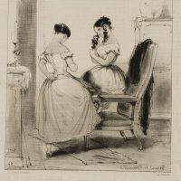 Edouard de Beaumont (1821 – 1888 ), Caricature Conversation between two young ladies, , Lithography