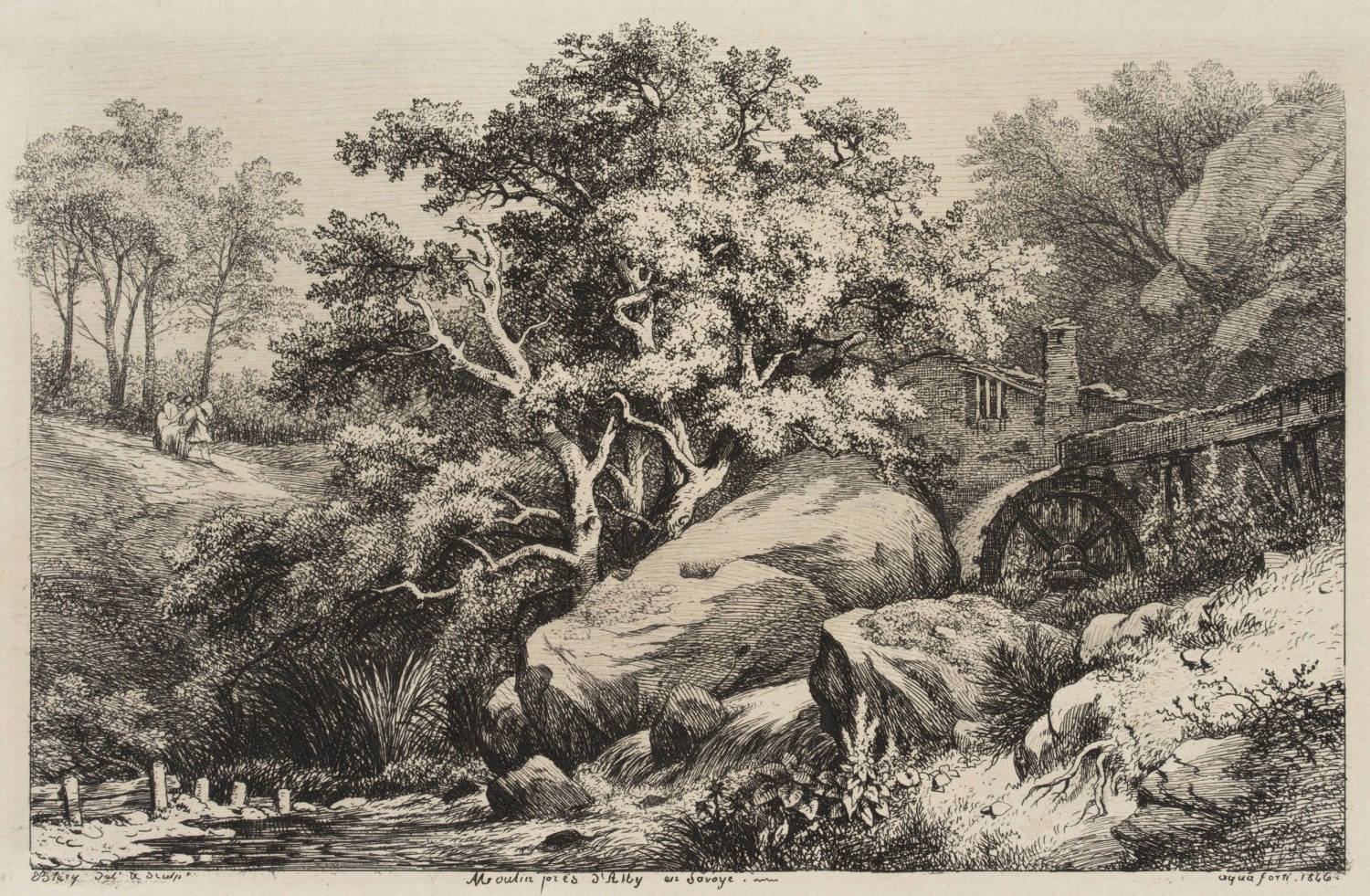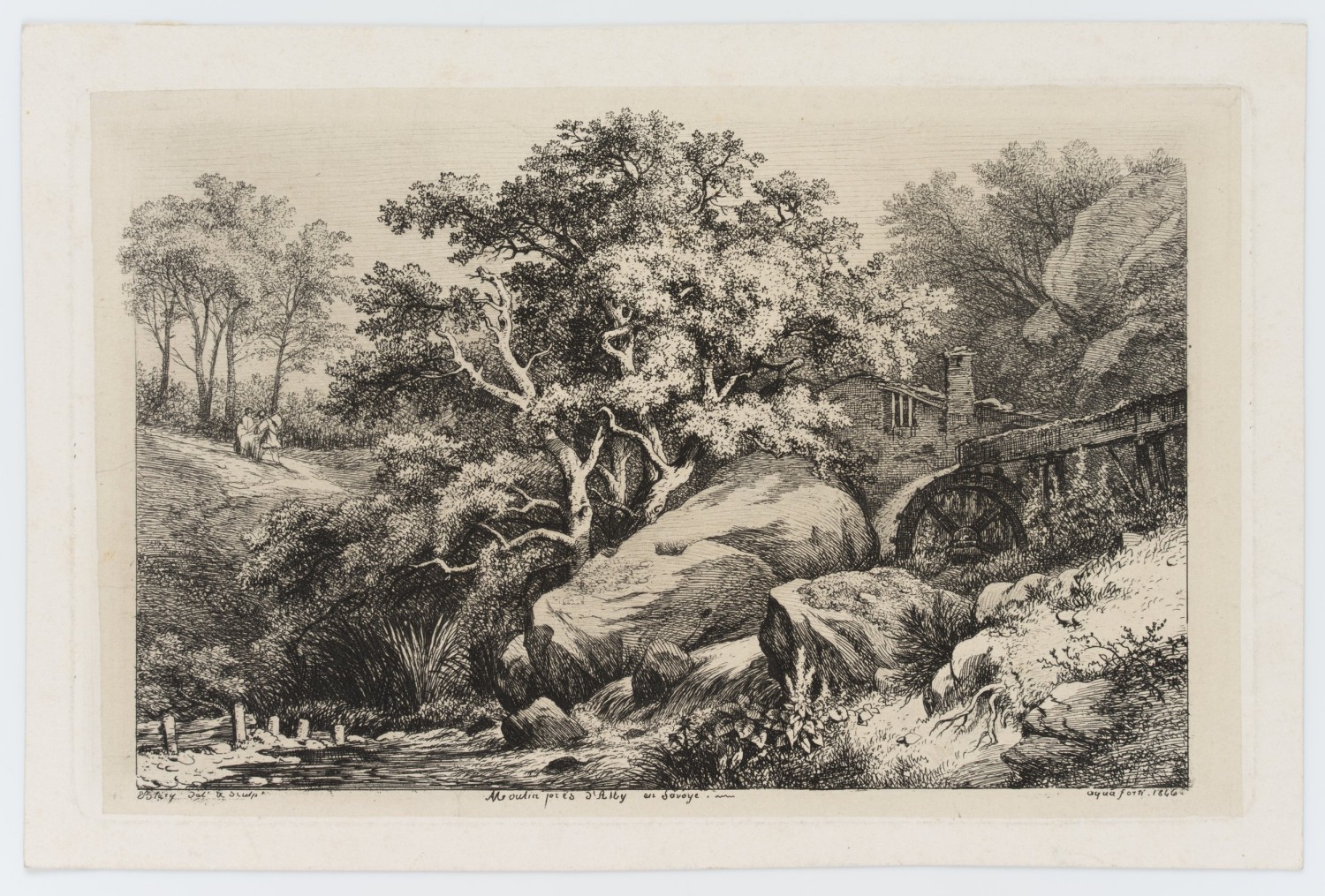 - Keywords: Print, Landscape, Mill, River, Forest, Tree, Path, France, 19th century, Romanticism, Landscapes, France,