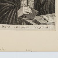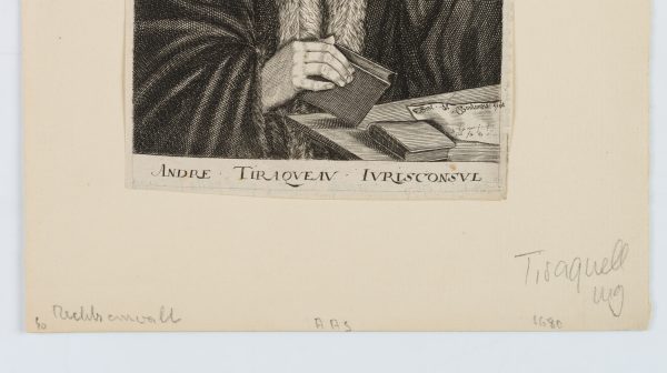 - Inscription: Lower right signed in the printing plate: “Esme de Boulonois fecit”. Lower middle inscribed in the printing plate: “Andre Tiraqvean ivrisconsvl”.