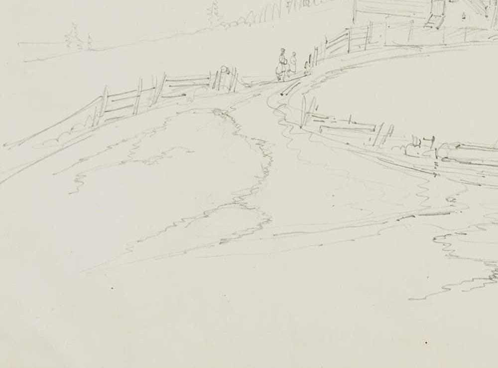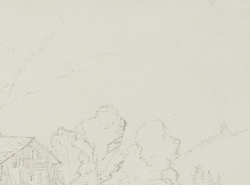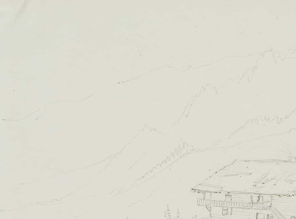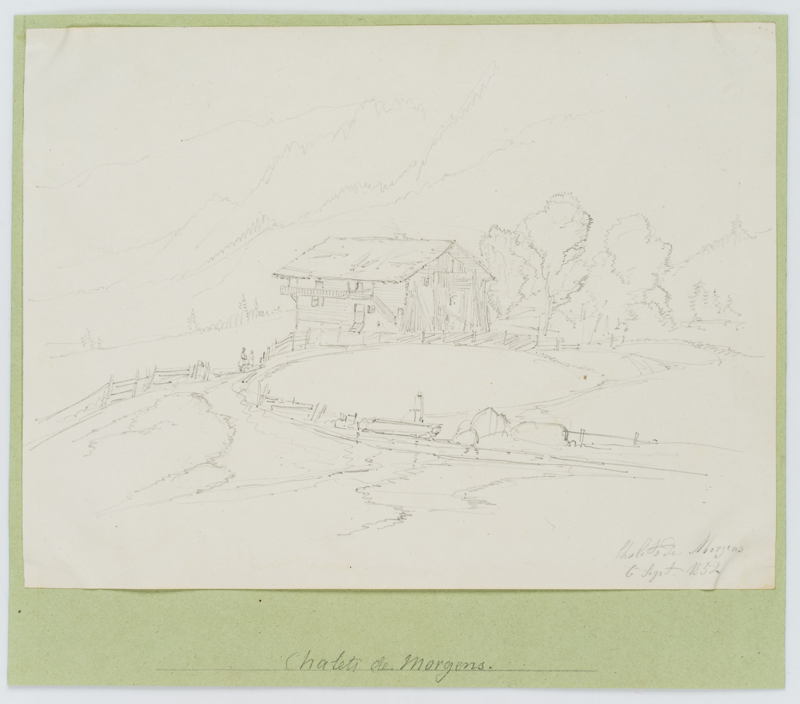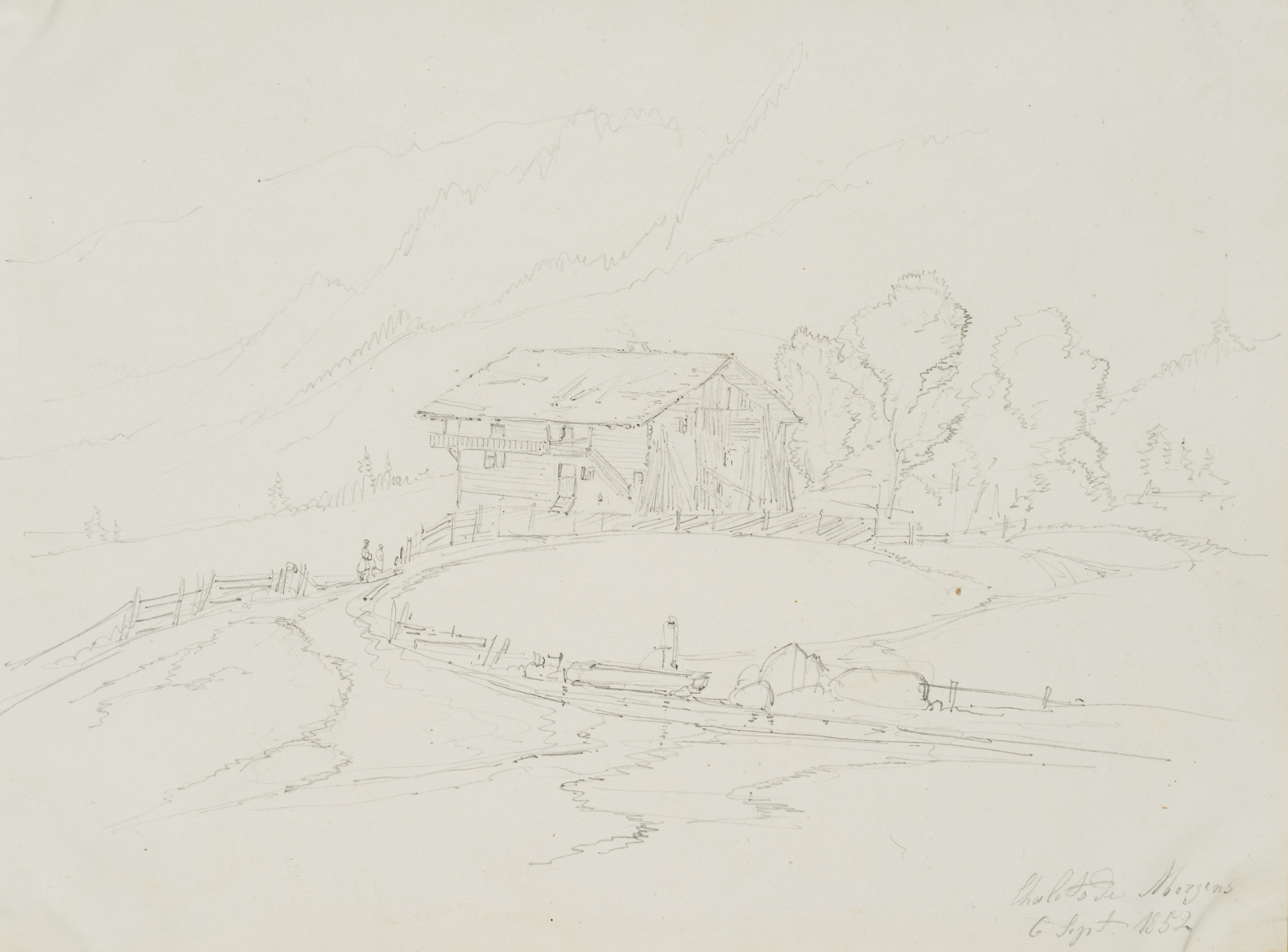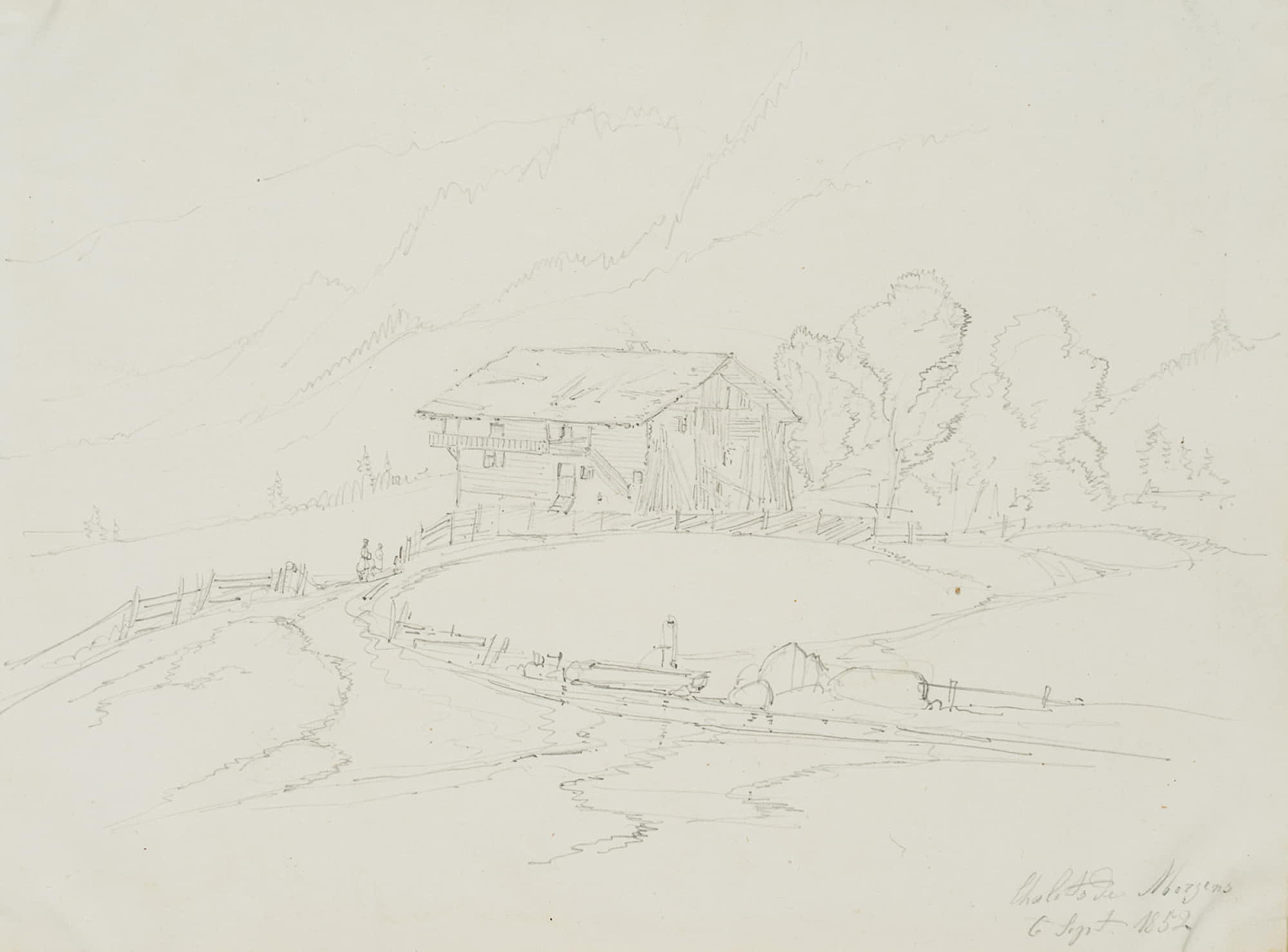Edmond de Bretenières (1804 Dijon – 1882 ibid.), Chalet de Morgens”, presumably near the Morges river valley in the canton of Vaud, journey to Switzerland, sketchbook, 1852, Pencil
