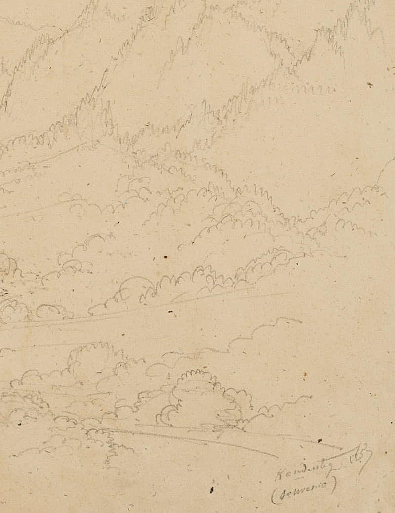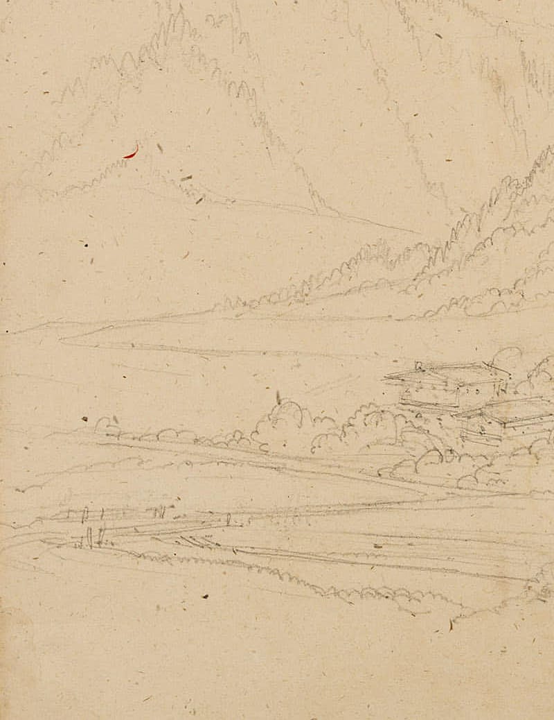 From a scrapbook with travel sketches by the artist. “Esquisses faites par le Baron Edmond de Bretenières feudant les voyages en Suisse” (Sketches made by Baron Edmond de Bretenieres during his travels in Switzerland).