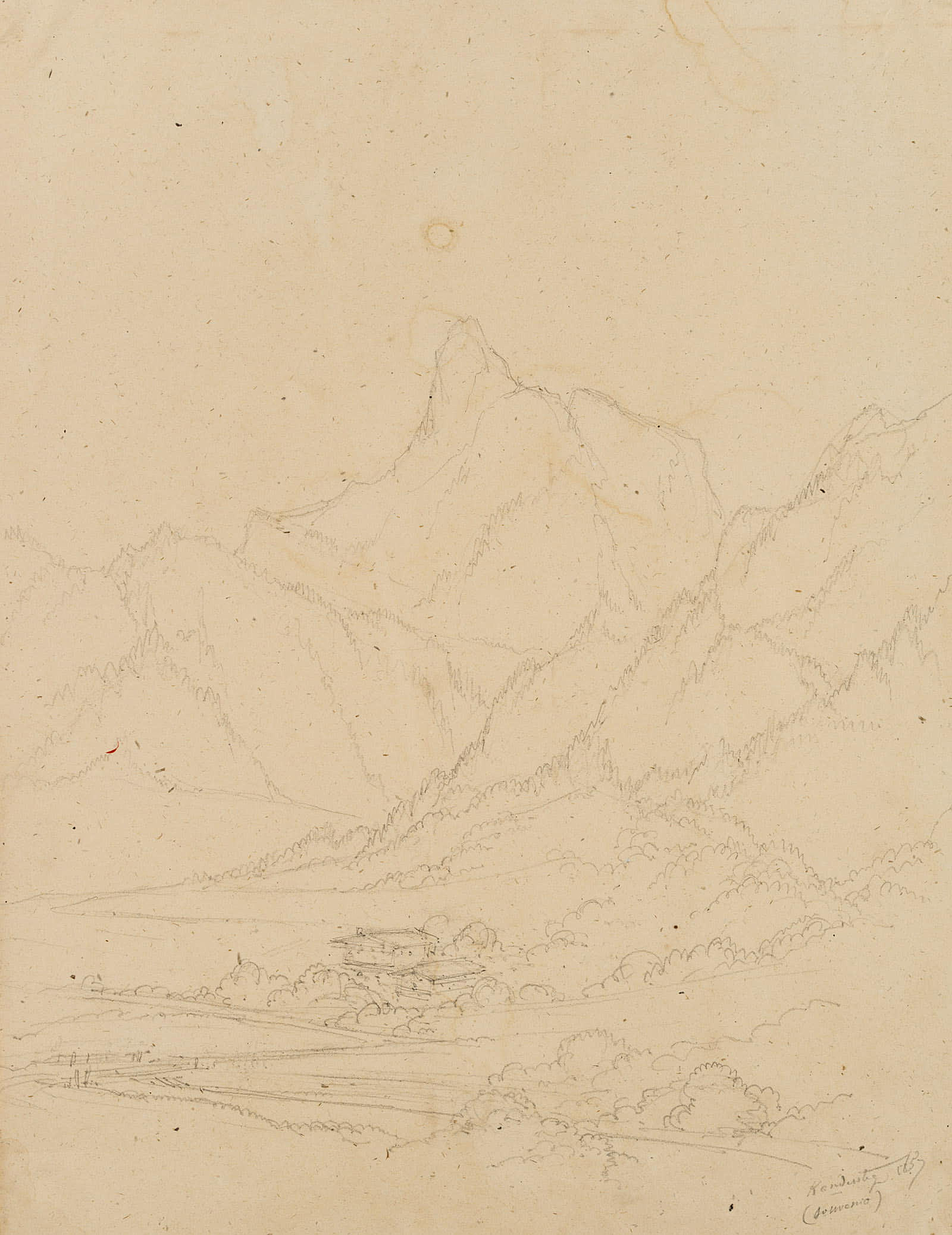 Aus einem Sammelalbum mit Reiseskizzen des Künstlers. “Esquisses faites par le Baron Edmond de Bretenières feudant les voyages en Suisse” (Skizzen, die Baron Edmond de Bretenieres während seiner Reisen in der Schweiz angefertigt hat).