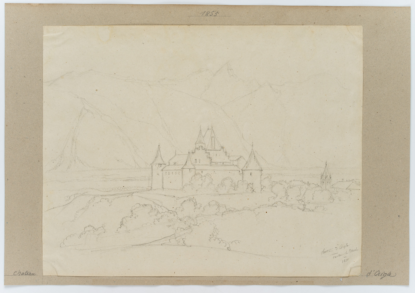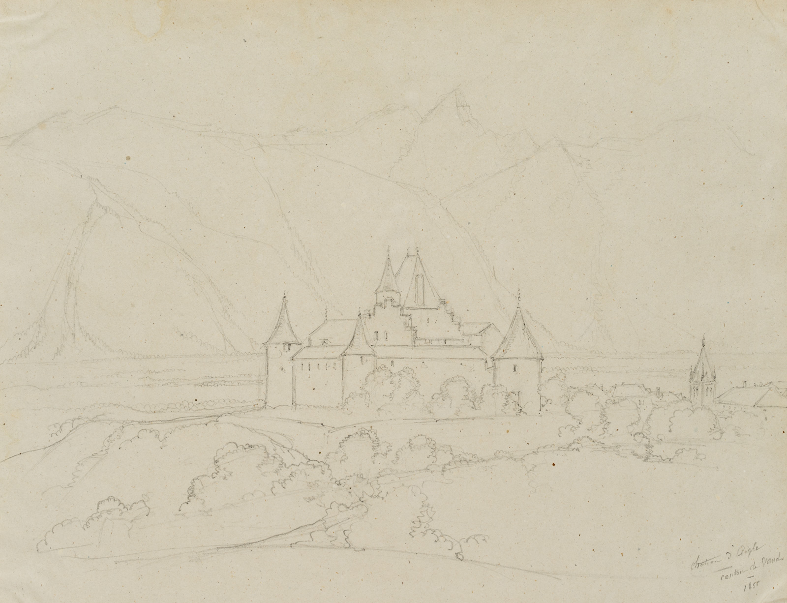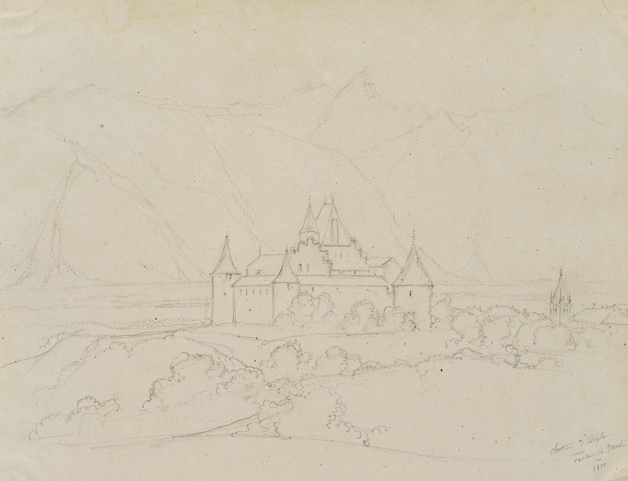 Edmond de Bretenières (1804 Dijon – 1882 ibid.), View of Aigle Castle in the Canton of Vaud, “Château d’Aigle”, Journey to Switzerland, Sketchbook, 1855, Pencil