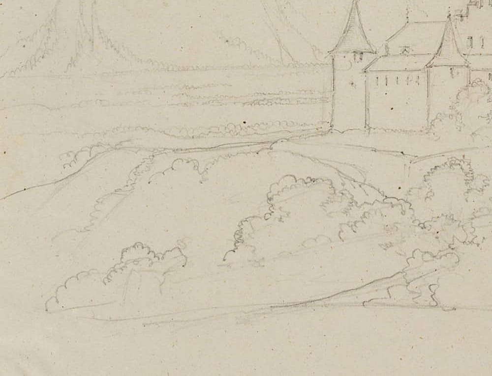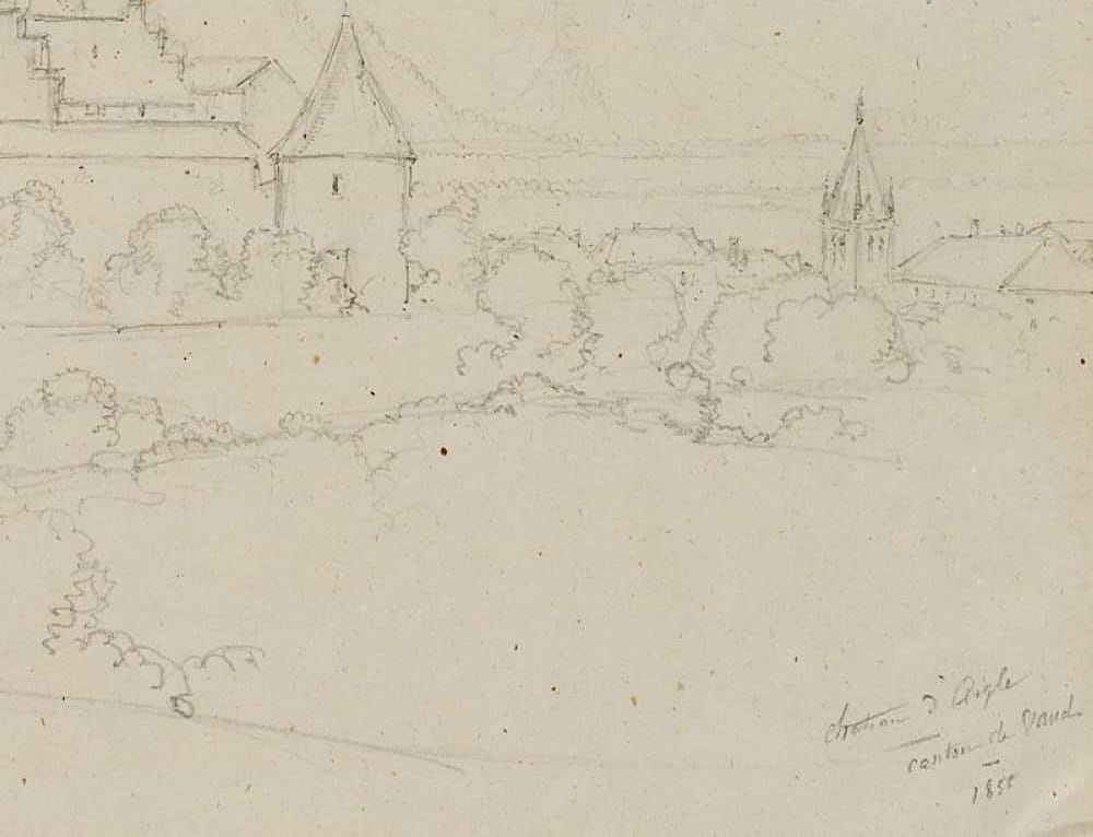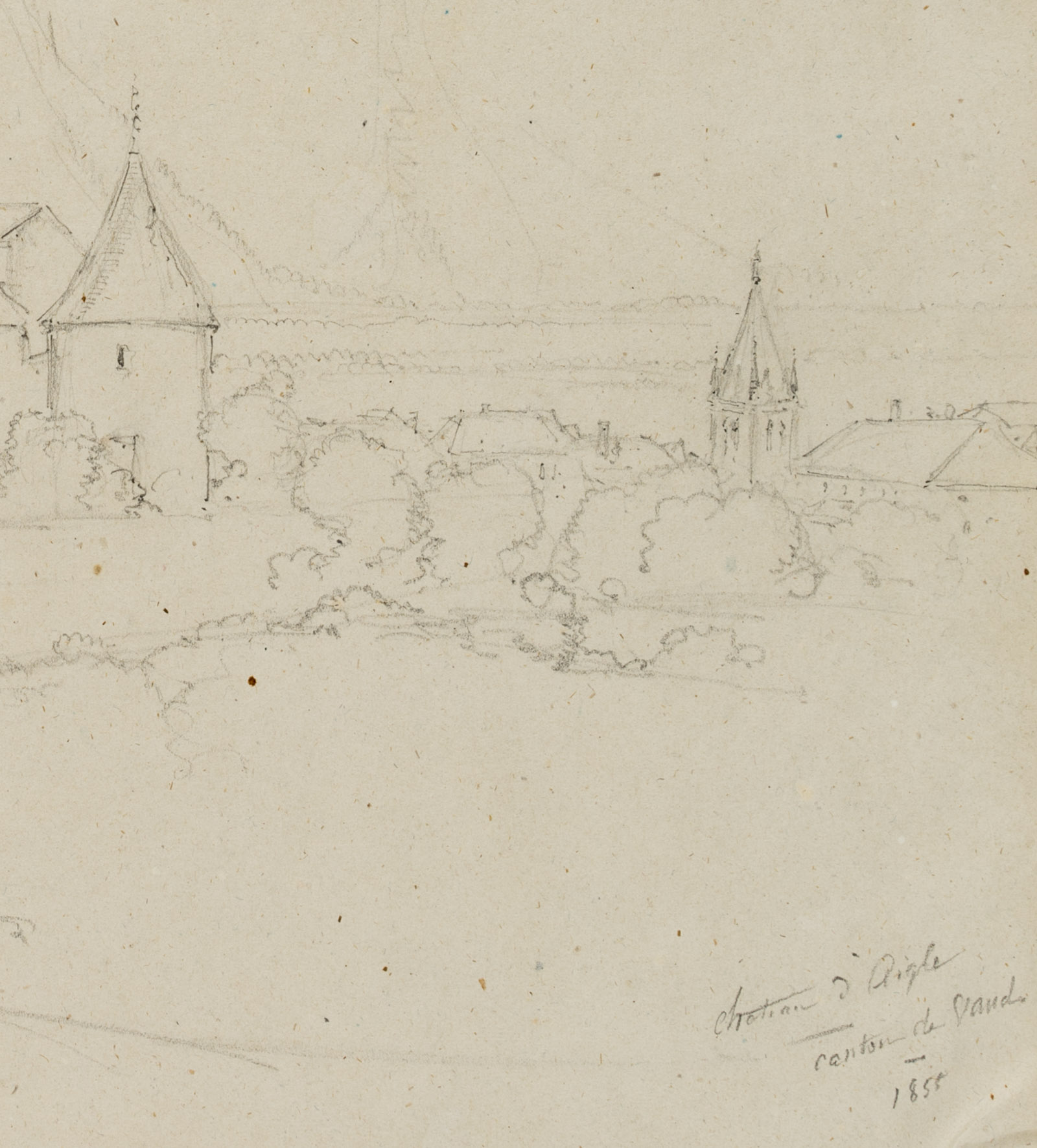 Edmond de Bretenières (1804 Dijon – 1882 ibid.), View of Aigle Castle in the Canton of Vaud, “Château d’Aigle”, Journey to Switzerland, Sketchbook, 1855, Pencil