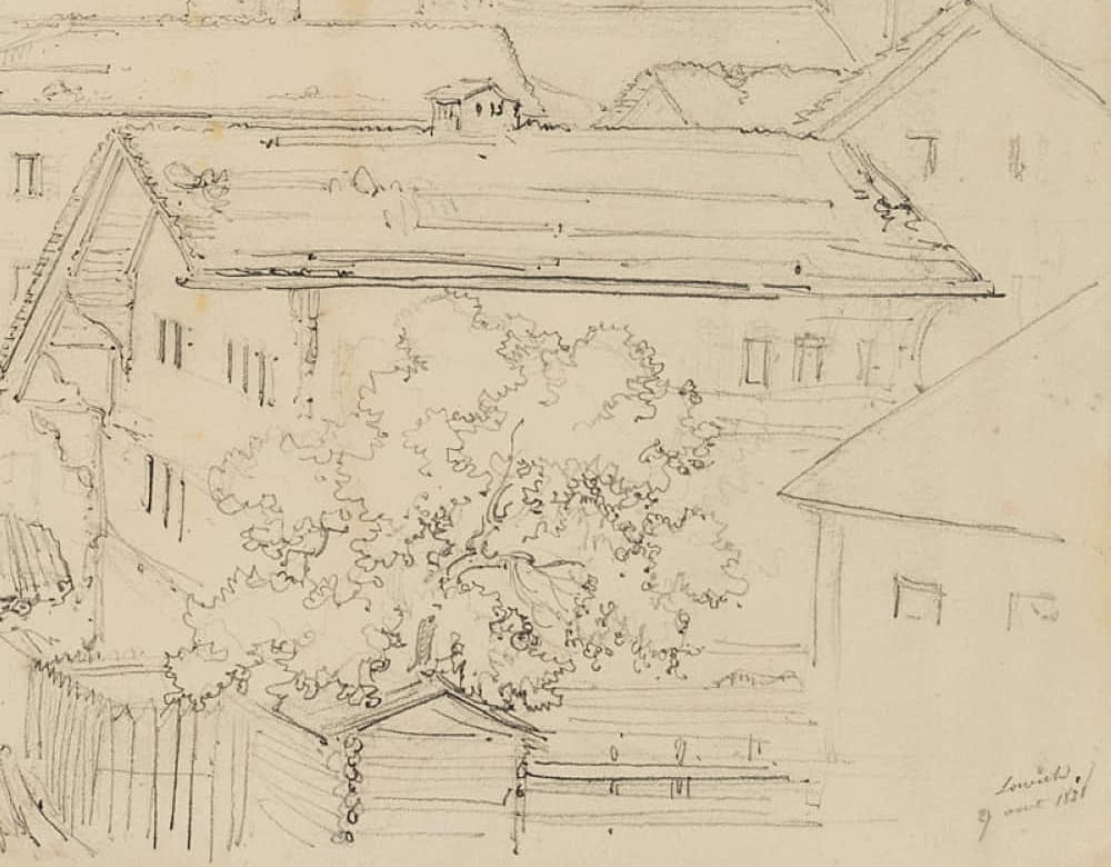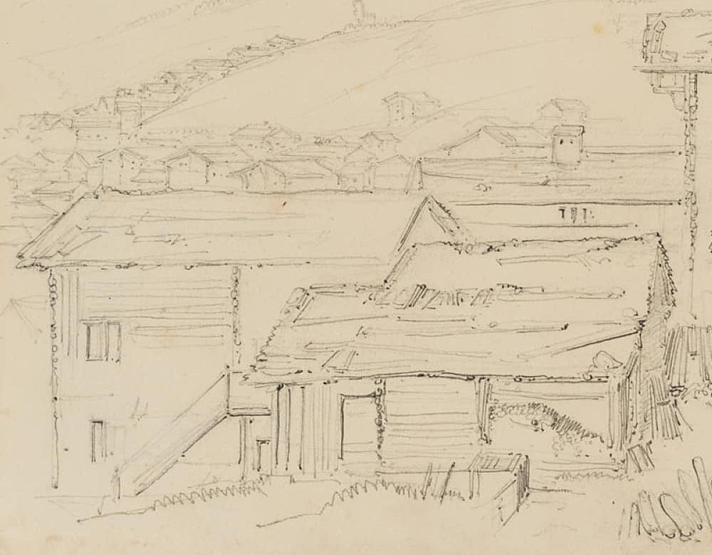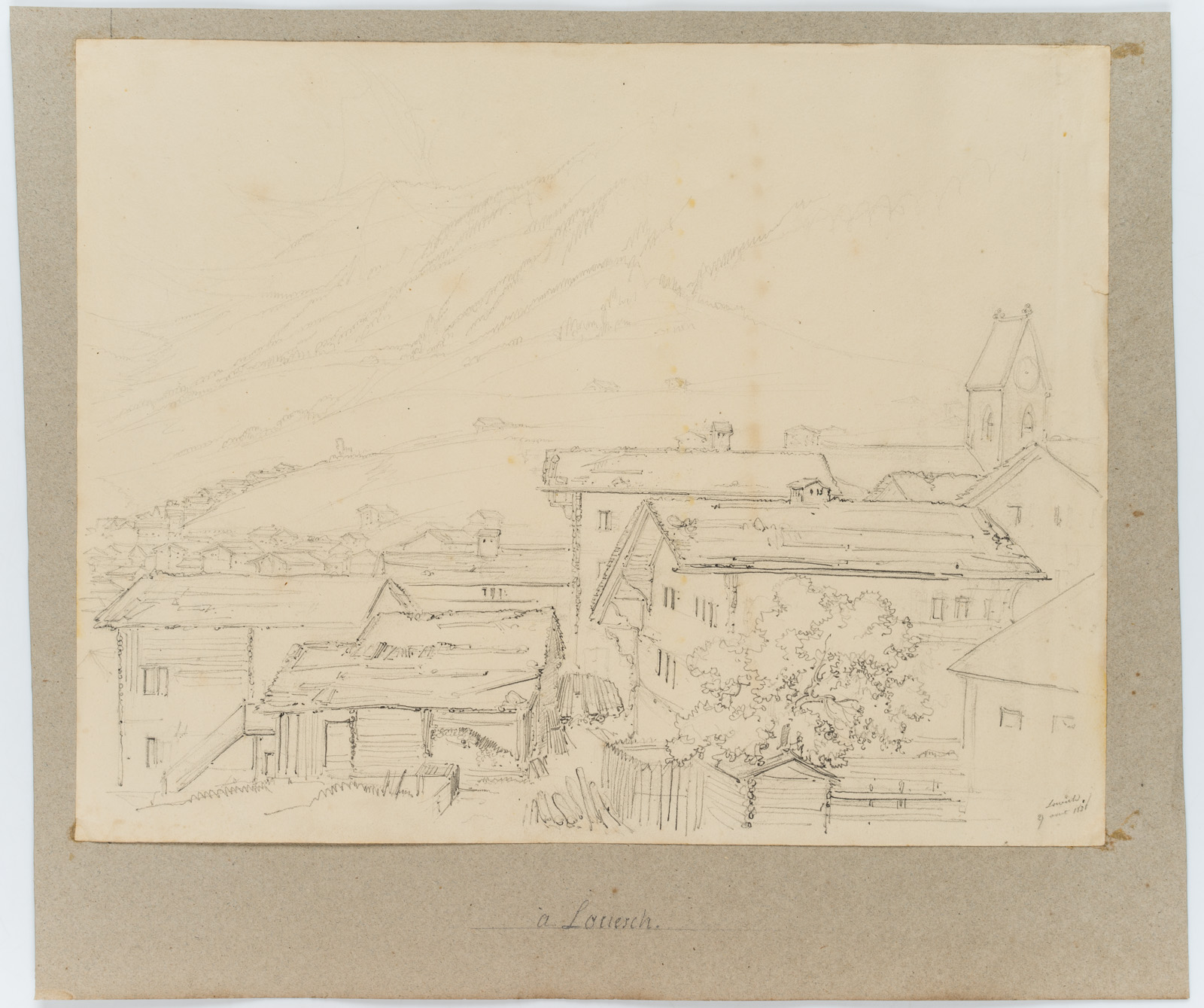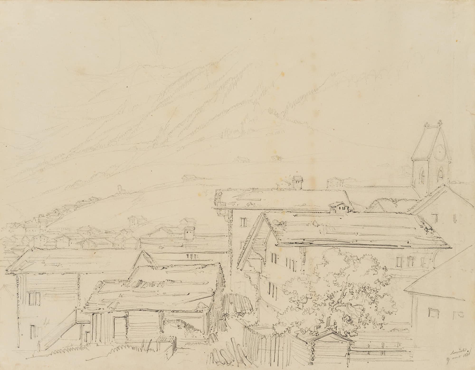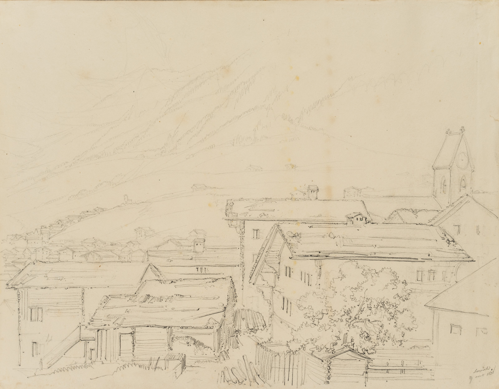 Edmond de Bretenières (1804 Dijon – 1882 ibid.), View of Leuk in the Canton of Valais, Loéche, Leigg, Journey to Switzerland, Sketchbook, 1838, Pencil