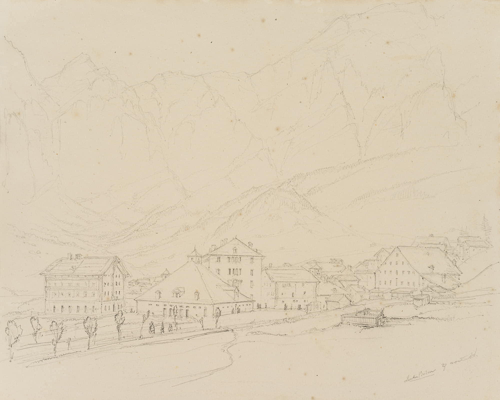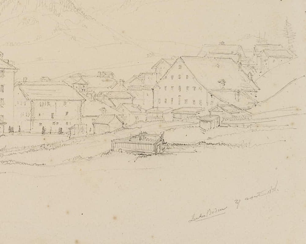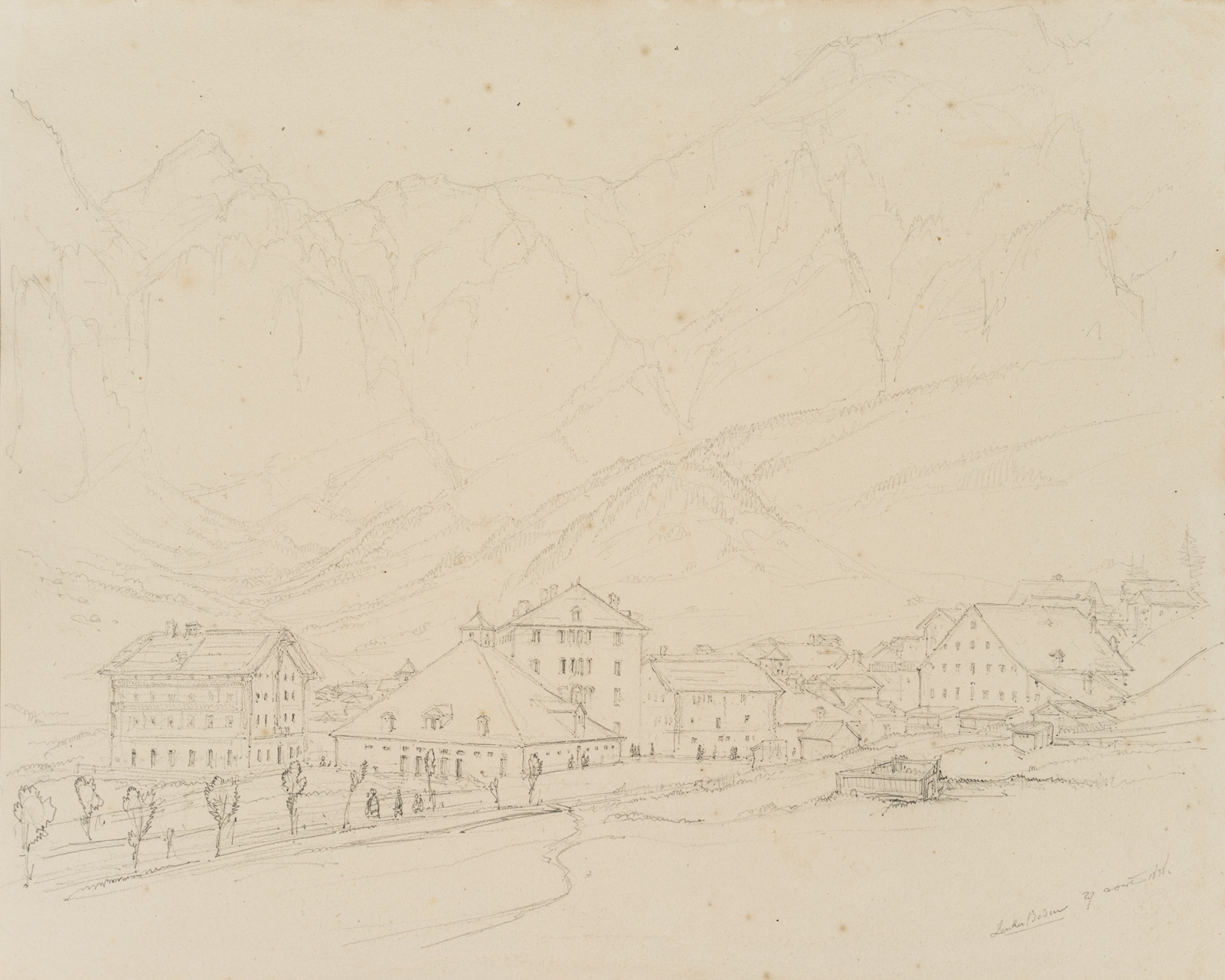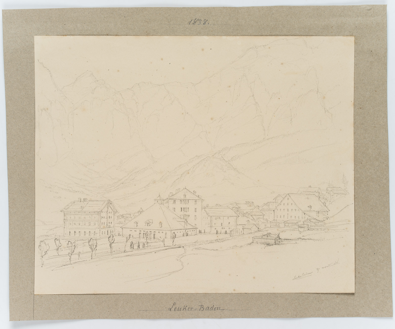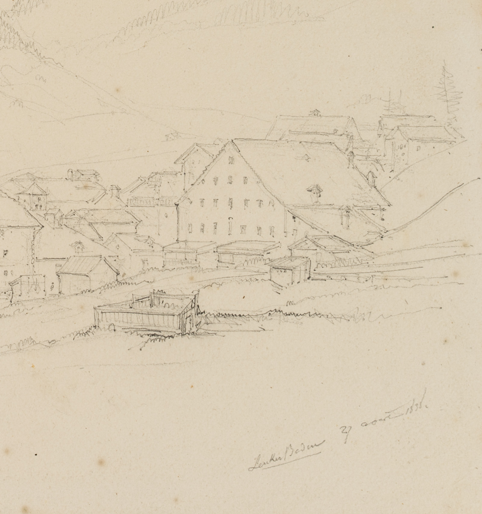 Edmond de Bretenières (1804 Dijon – 1882 ibid.), View of Leukerbad in the Canton of Valais, Loéche-les-Bains, Leiggerbad, Journey to Switzerland, Sketchbook, 1838, Pencil