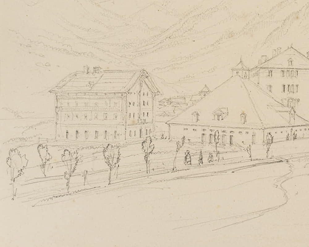 Aus einem Sammelalbum mit Reiseskizzen des Künstlers. “Esquisses faites par le Baron Edmond de Bretenières feudant les voyages en Suisse” (Skizzen, die Baron Edmond de Bretenieres während seiner Reisen in der Schweiz angefertigt hat).