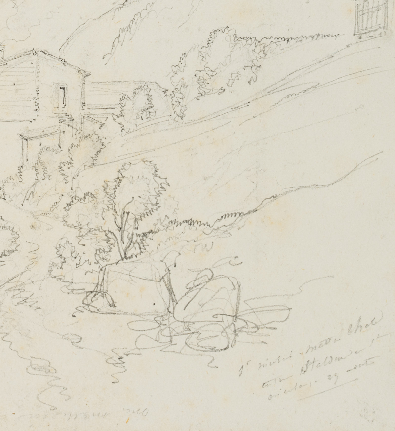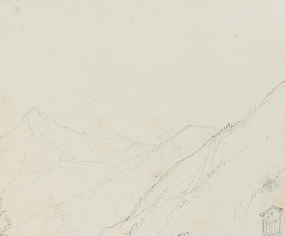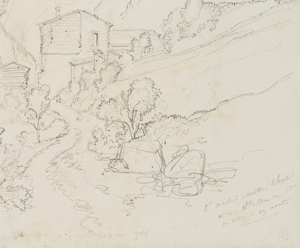 From a scrapbook with travel sketches by the artist. “Esquisses faites par le Baron Edmond de Bretenières feudant les voyages en Suisse” (Sketches made by Baron Edmond de Bretenieres during his travels in Switzerland).