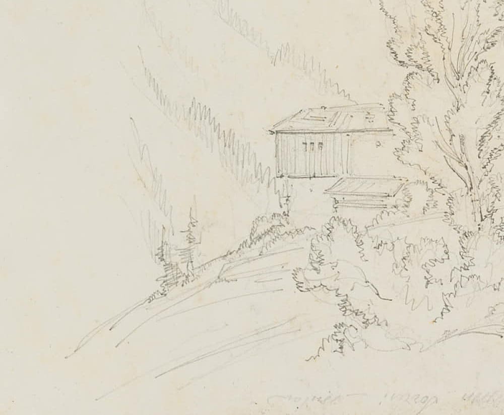 Aus einem Sammelalbum mit Reiseskizzen des Künstlers. “Esquisses faites par le Baron Edmond de Bretenières feudant les voyages en Suisse” (Skizzen, die Baron Edmond de Bretenieres während seiner Reisen in der Schweiz angefertigt hat).