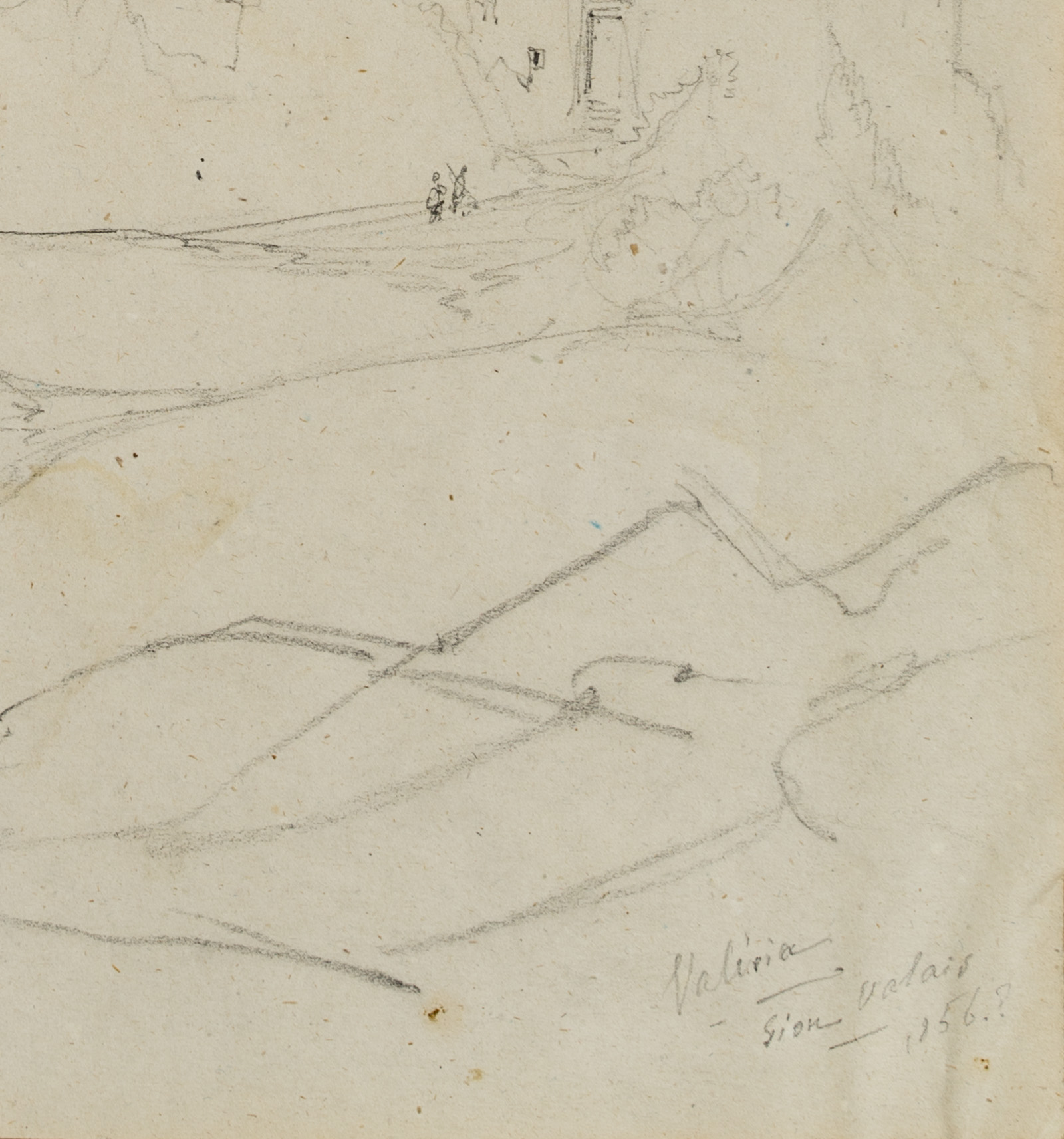 From a scrapbook with travel sketches by the artist. “Esquisses faites par le Baron Edmond de Bretenières feudant les voyages en Suisse” (Sketches made by Baron Edmond de Bretenieres during his travels in Switzerland).