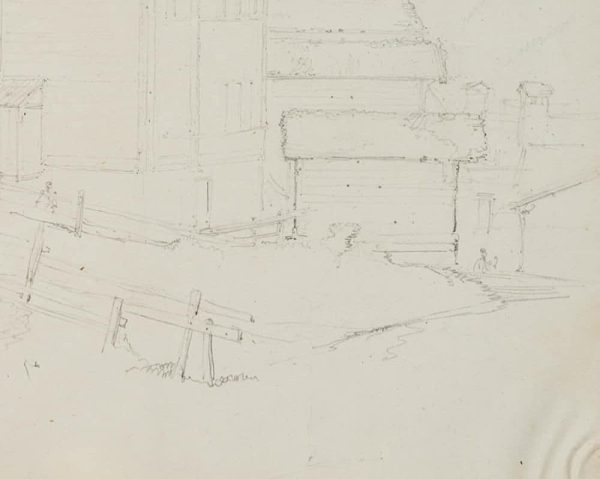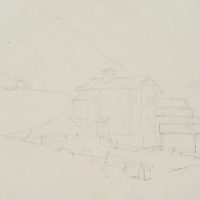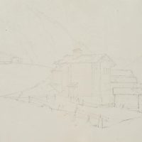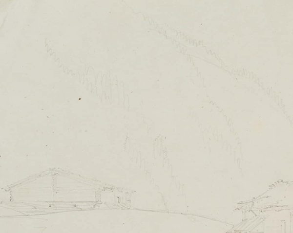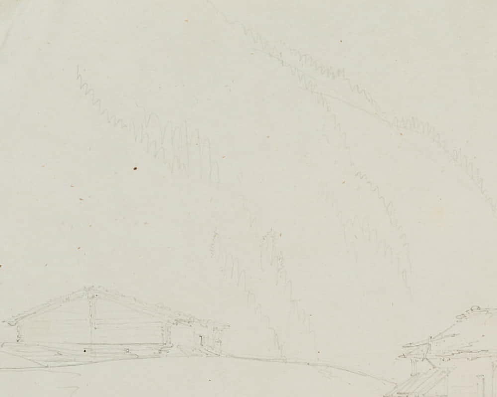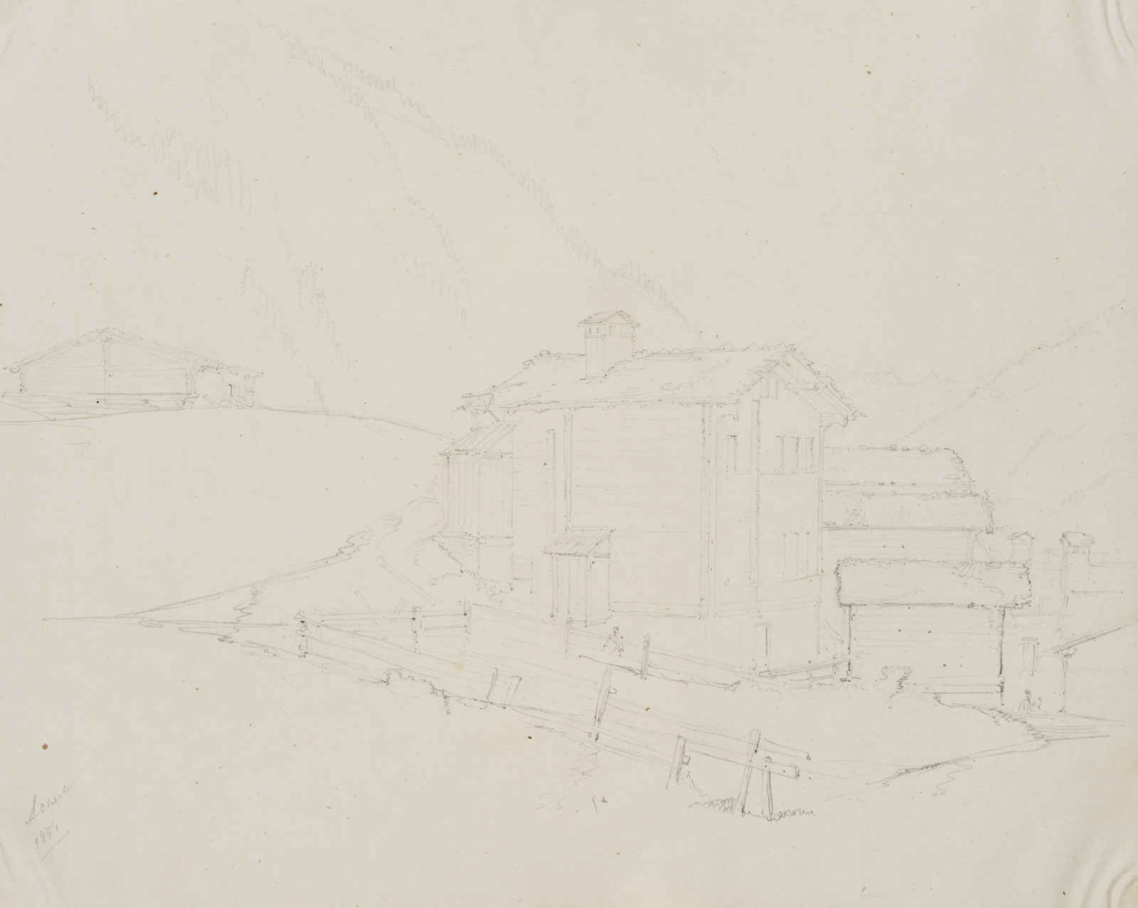 Edmond de Bretenières (1804 Dijon – 1882 ibid.), Mountain farms or inns near Leuk in the canton of Valais, Loéche, Leigg, “Louesch”, Journey to Switzerland, Sketchbook, 1851, Pencil