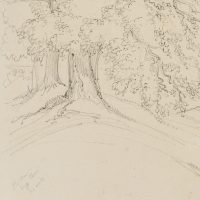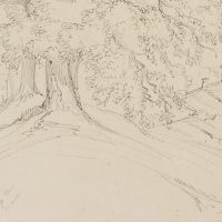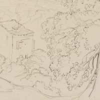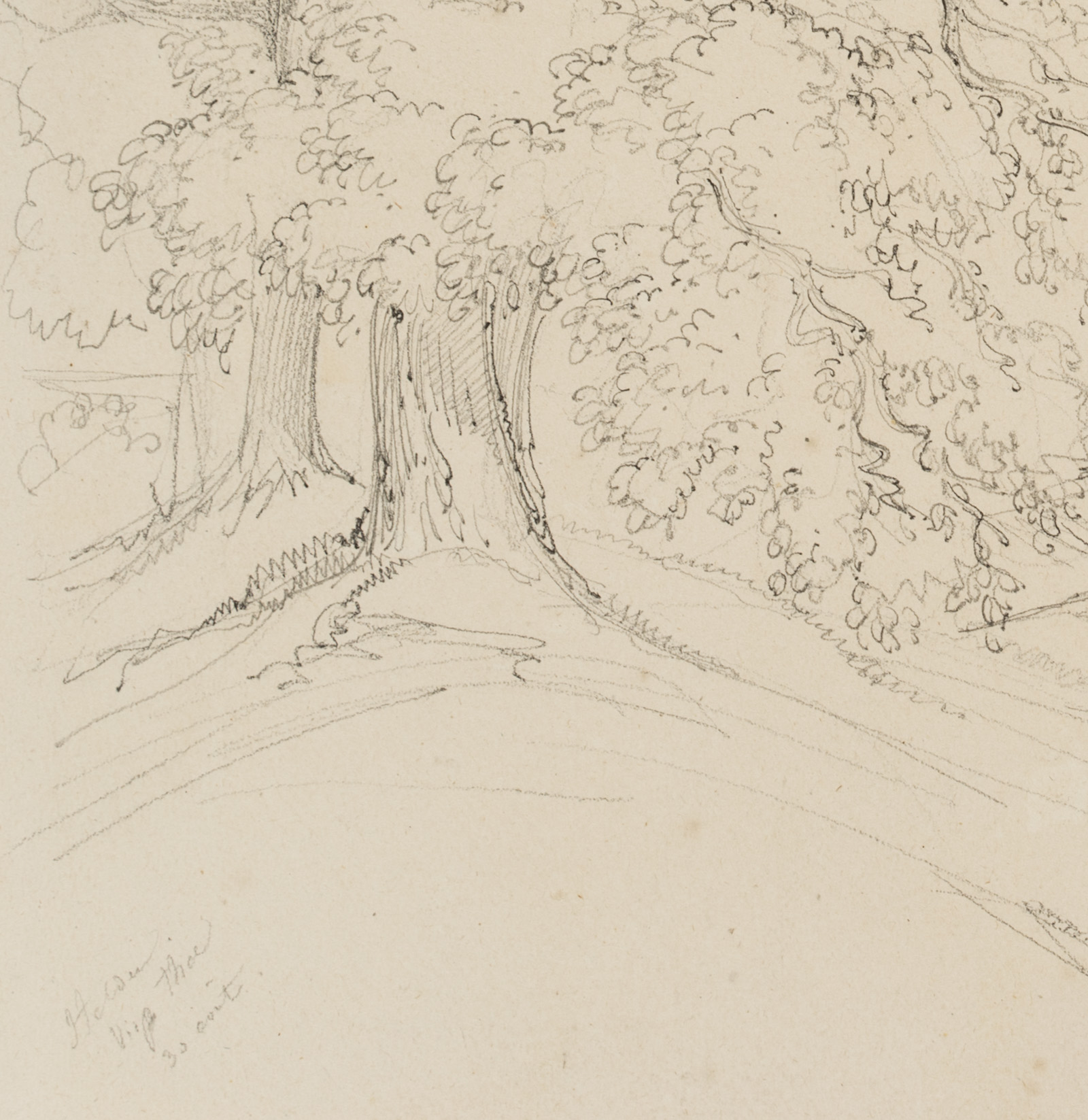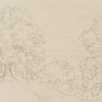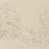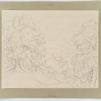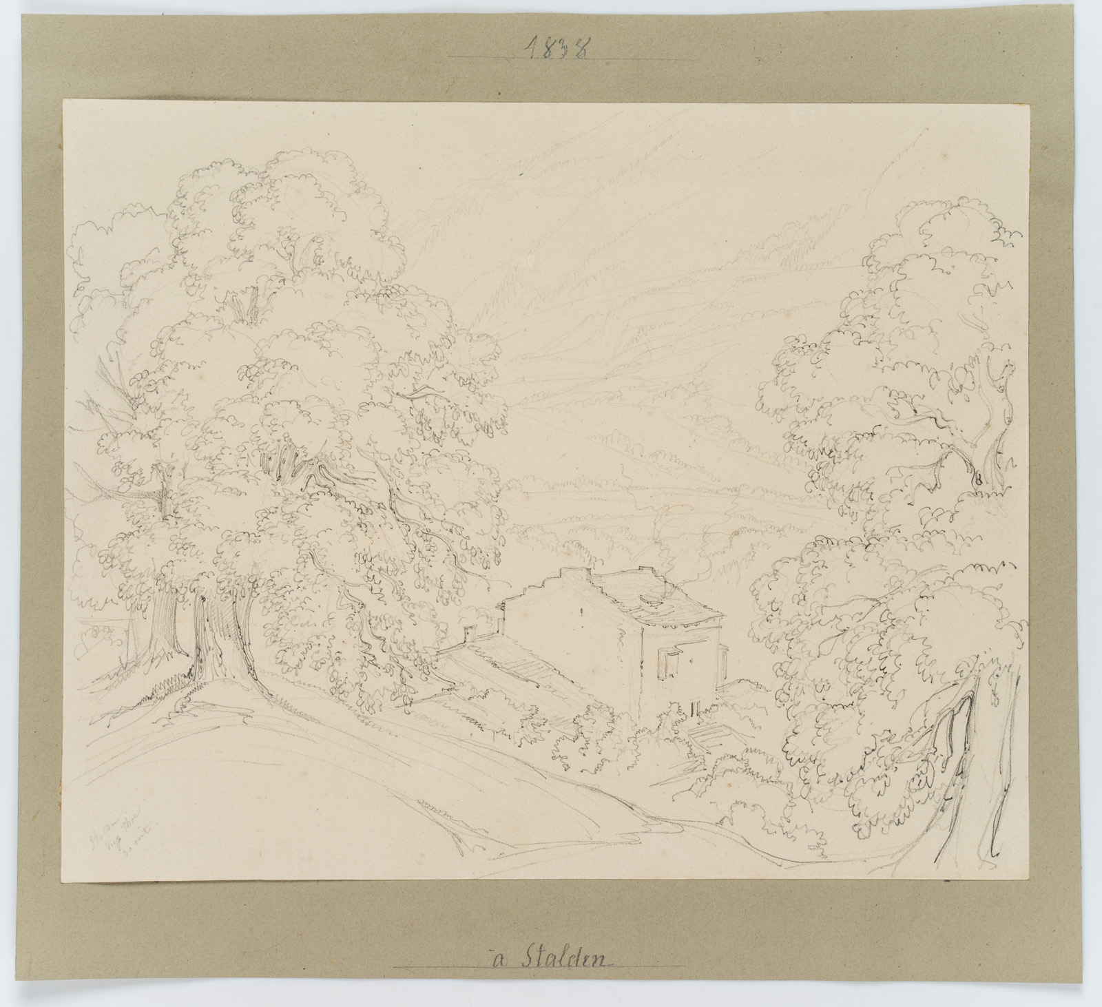 Edmond de Bretenières (1804 Dijon – 1882 ibid.), View from the forest over a house in Stalden in the Vispertal valley in the canton of Valais, Journey to Switzerland, Sketchbook, 1838, Pencil