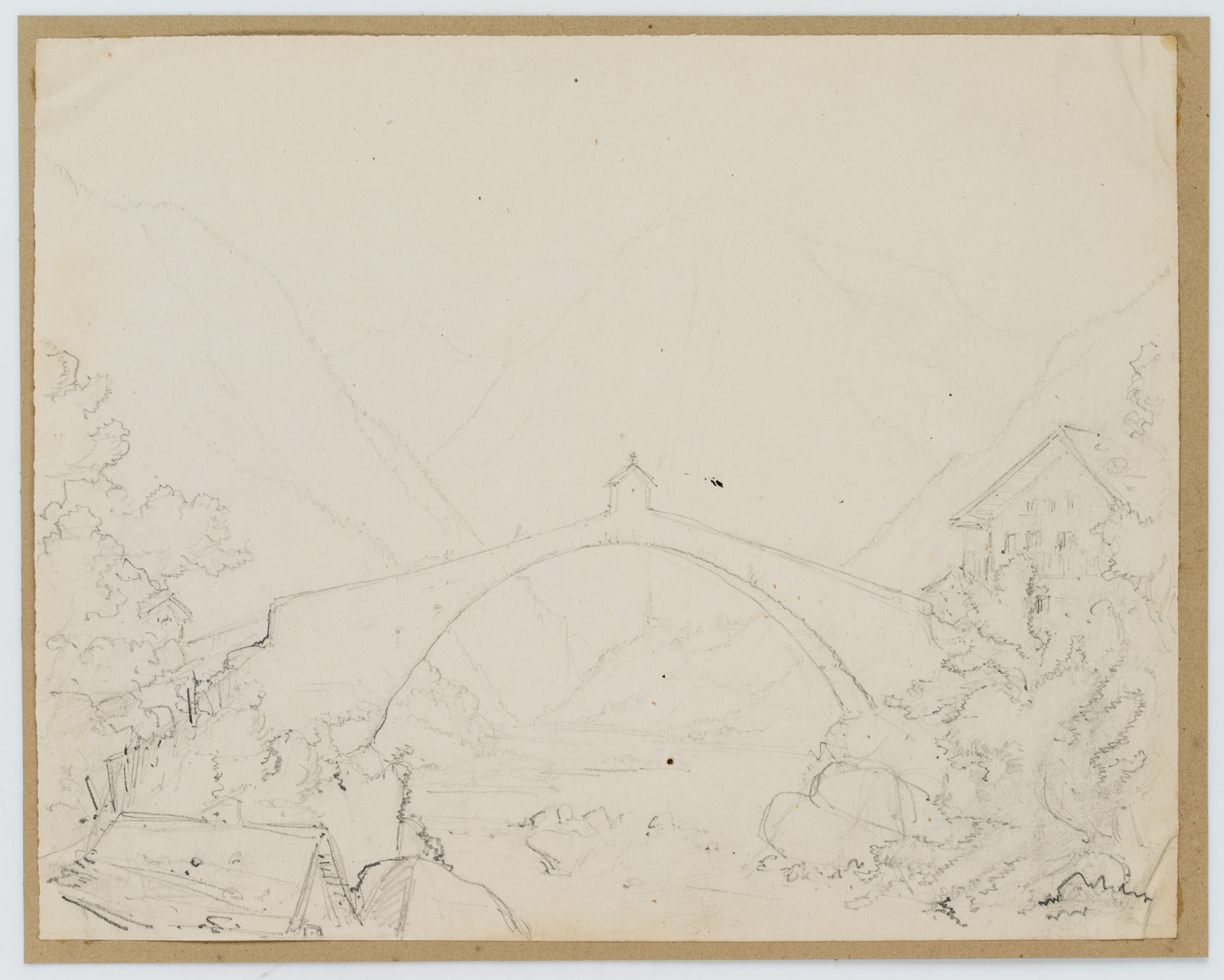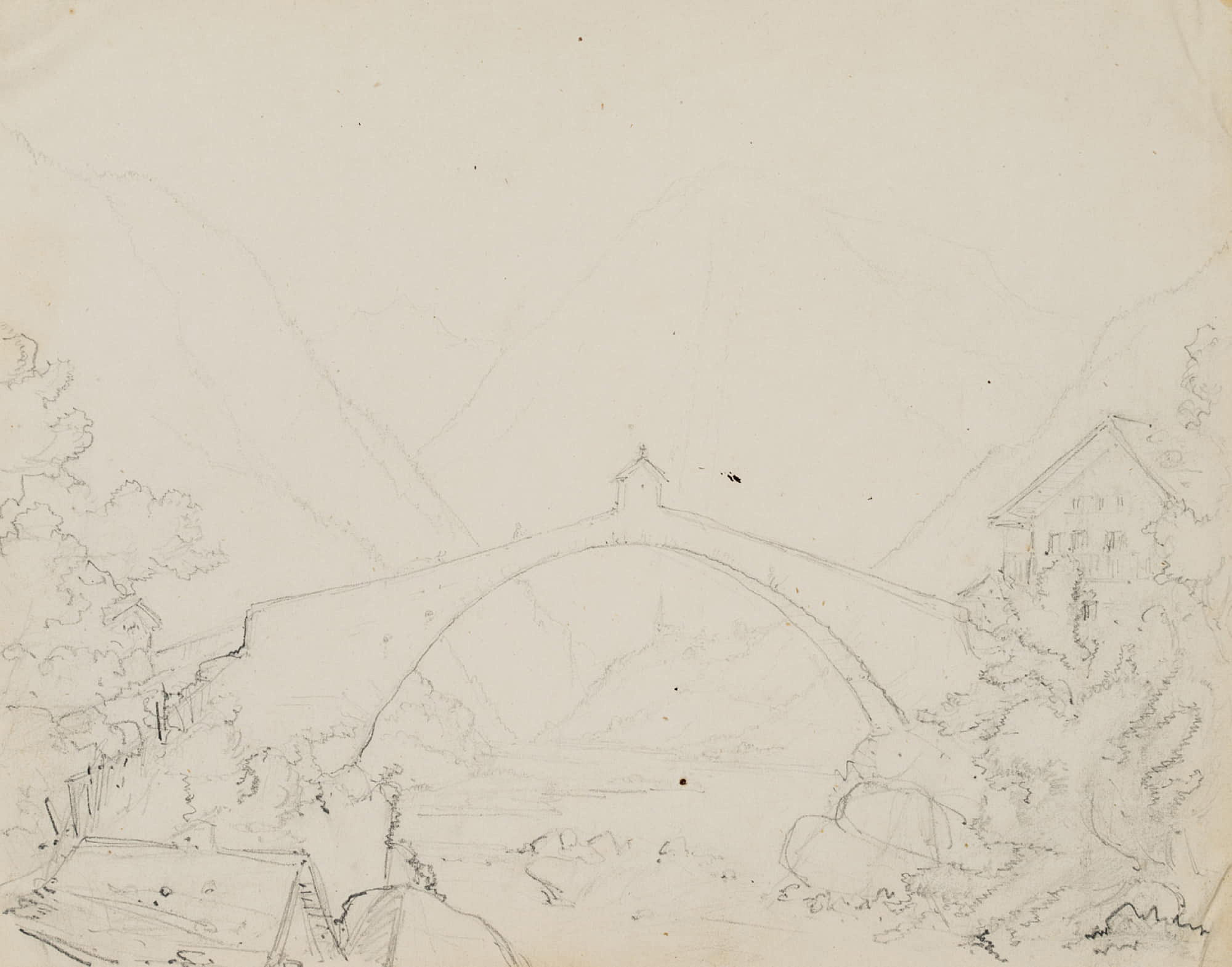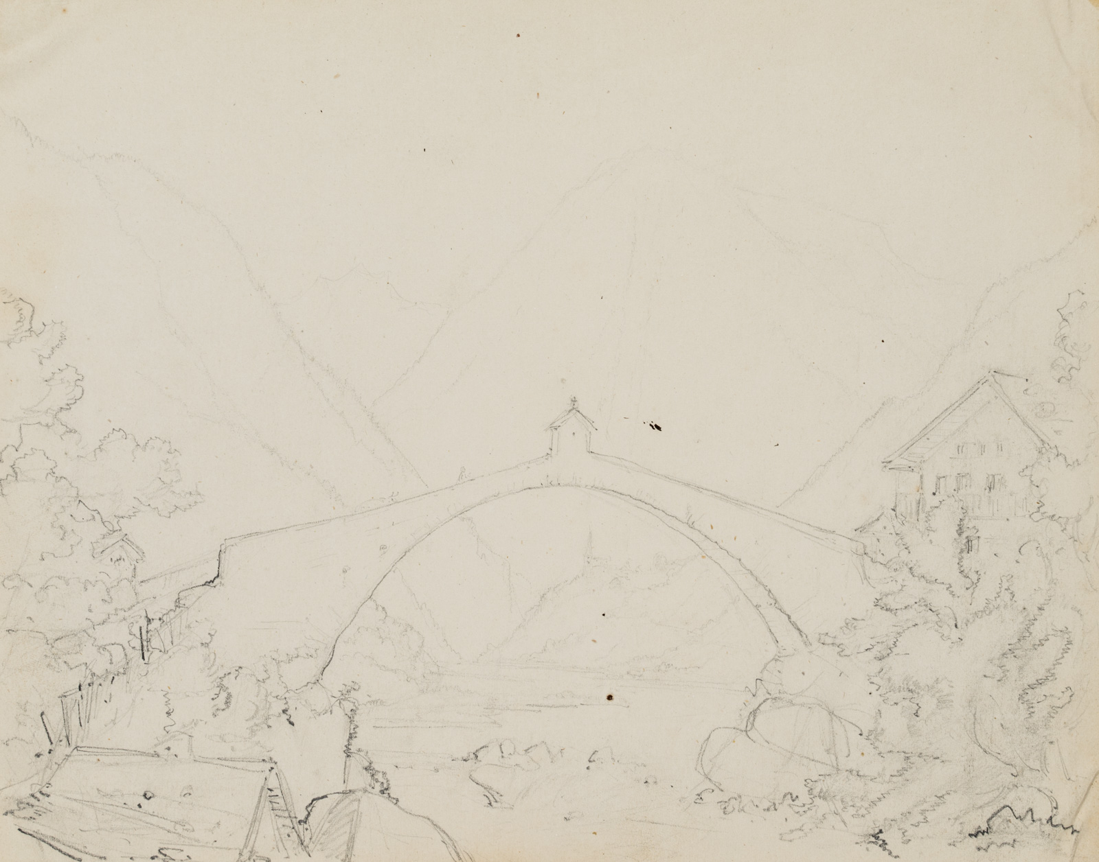 Edmond de Bretenières (1804 Dijon – 1882 ibid.), Stone bridge near Neubrück in the Vispertal valley in the canton of Valais, Journey to Switzerland, Sketchbook, 1838, Pencil