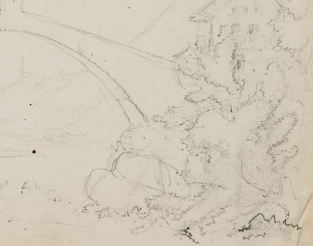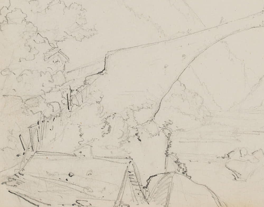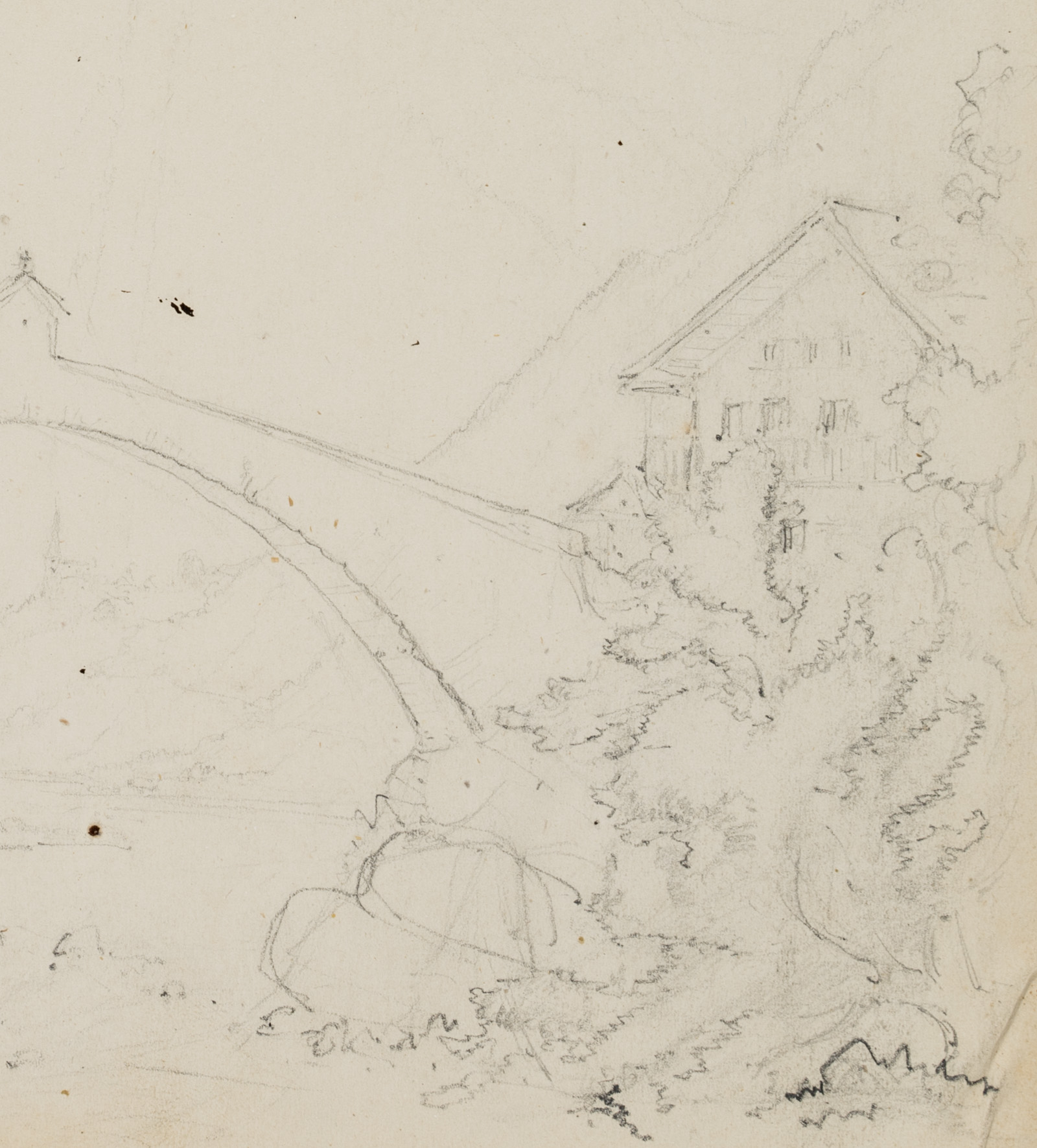 Edmond de Bretenières (1804 Dijon – 1882 ibid.), Stone bridge near Neubrück in the Vispertal valley in the canton of Valais, Journey to Switzerland, Sketchbook, 1838, Pencil