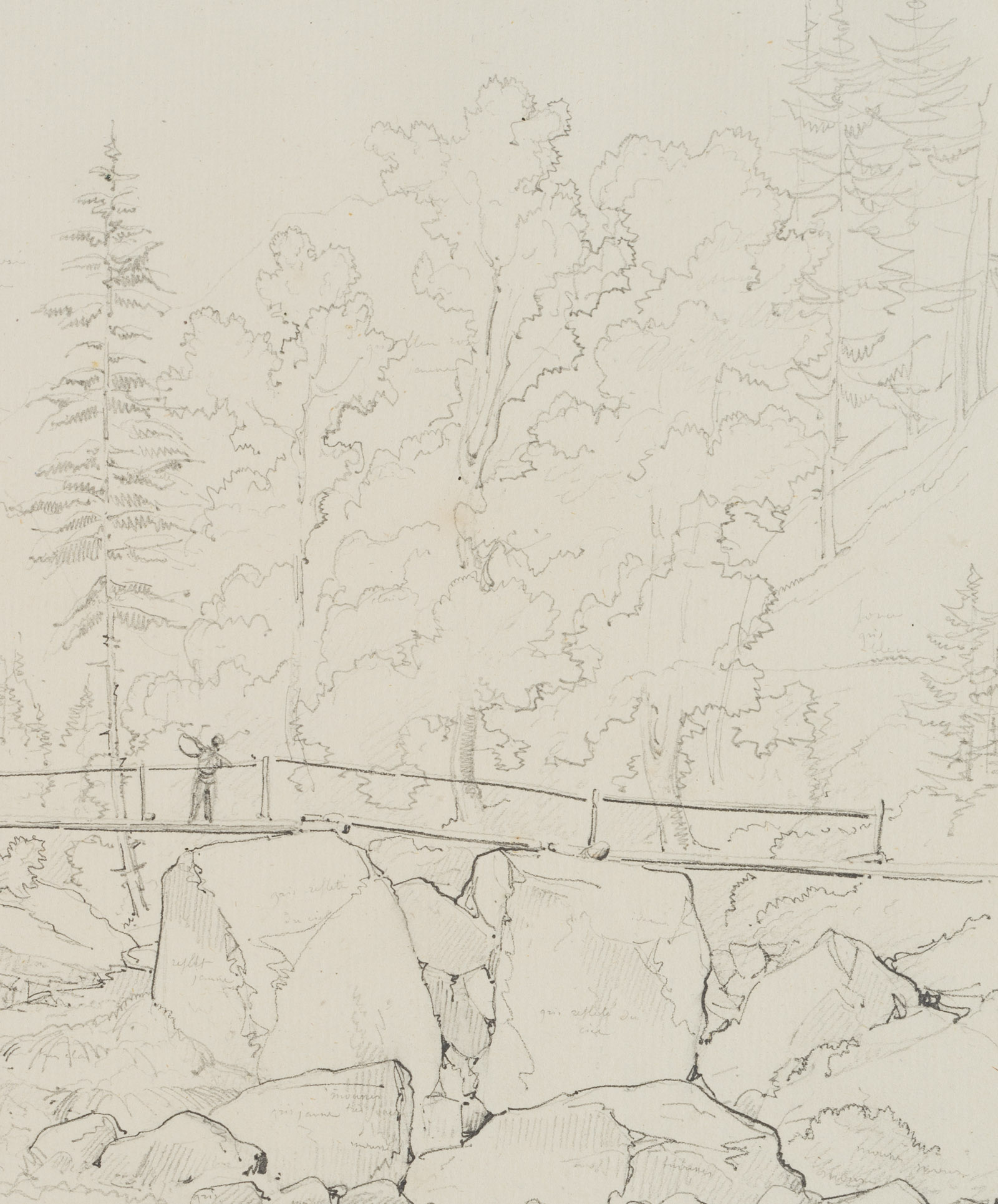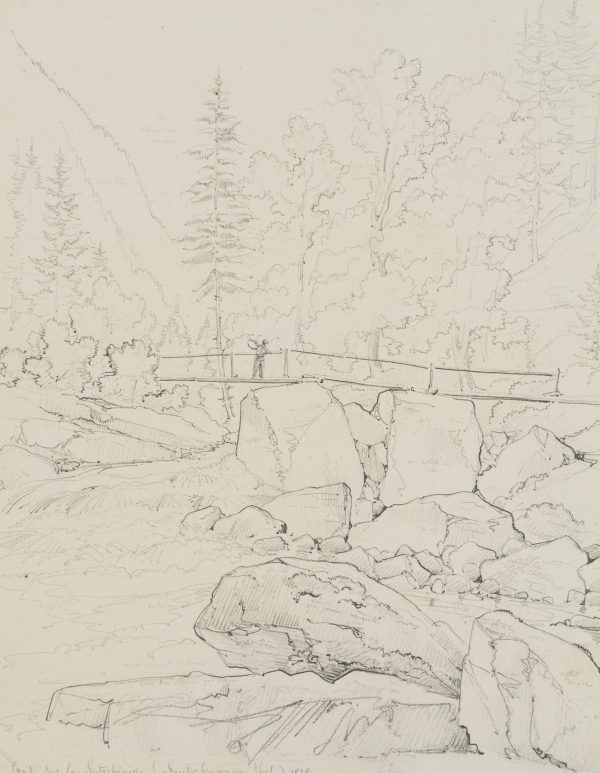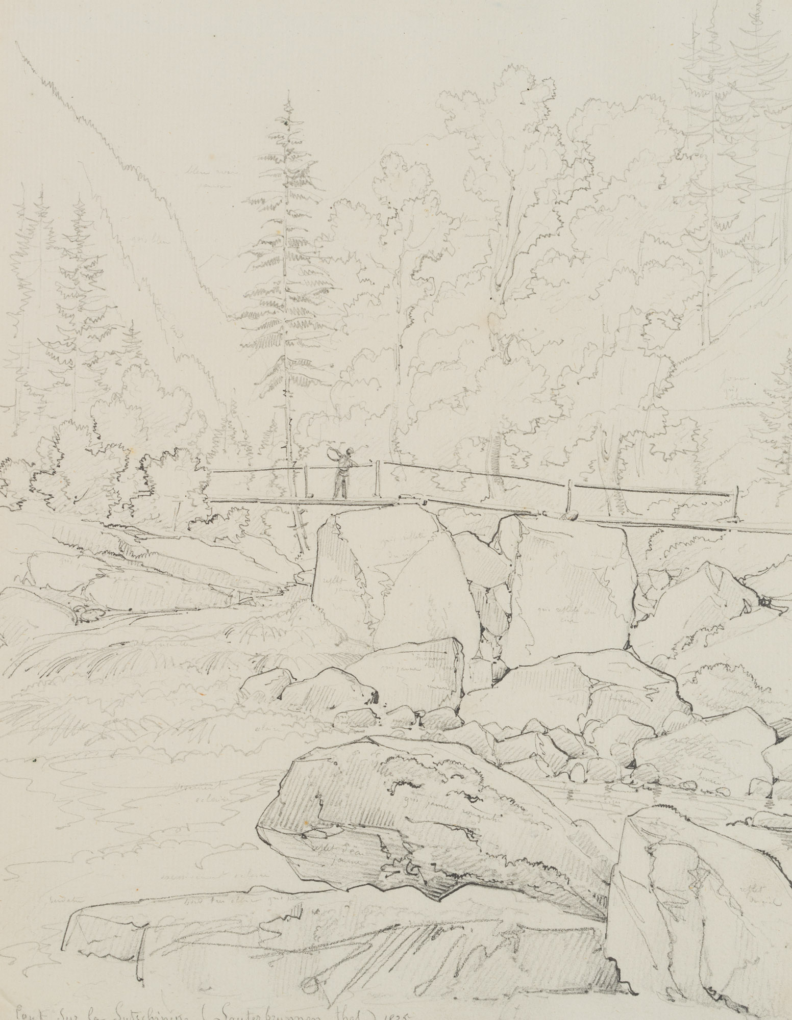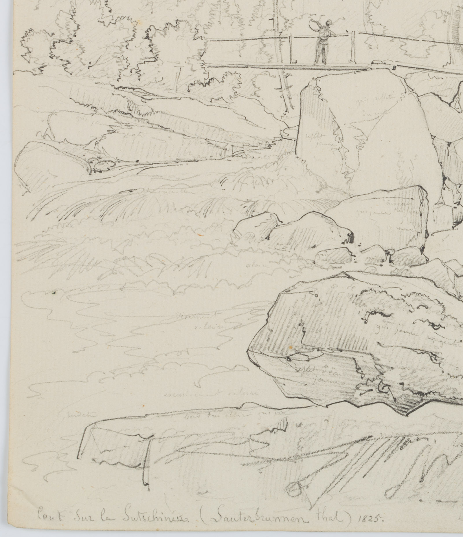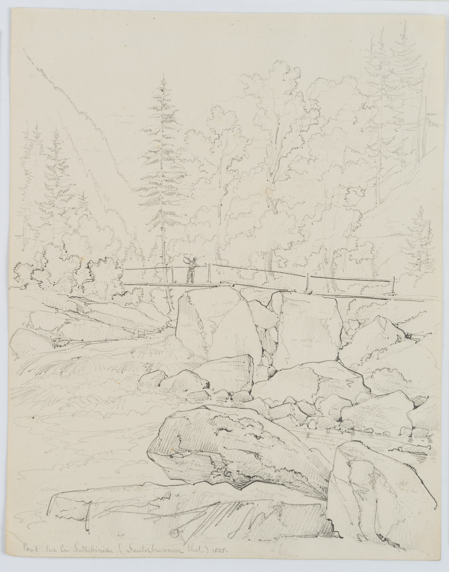 Edmond de Bretenières (1804 Dijon – 1882 ibid.), Bridge in the Lauterbrunnen Valley, Switzerland, 1825, Pencil