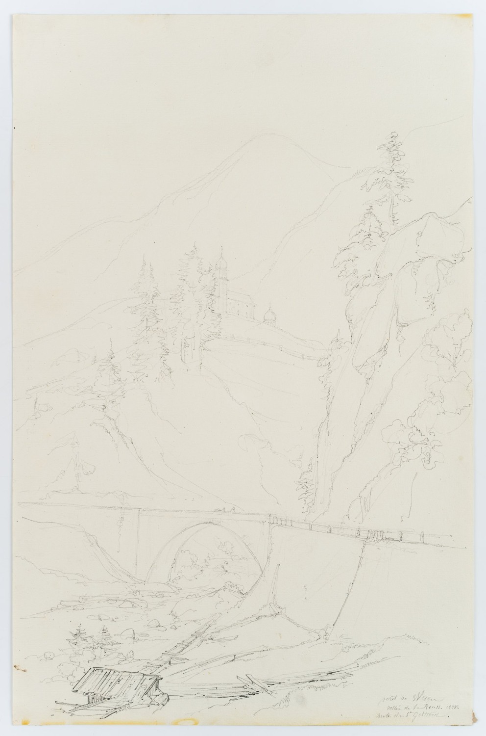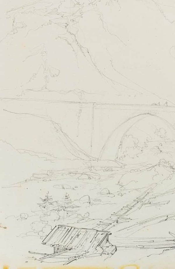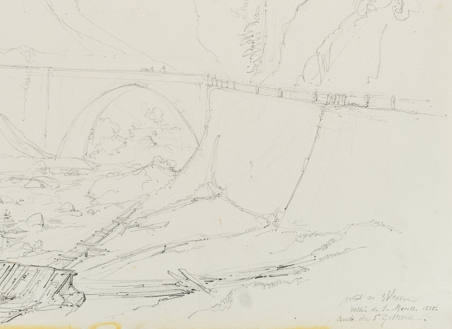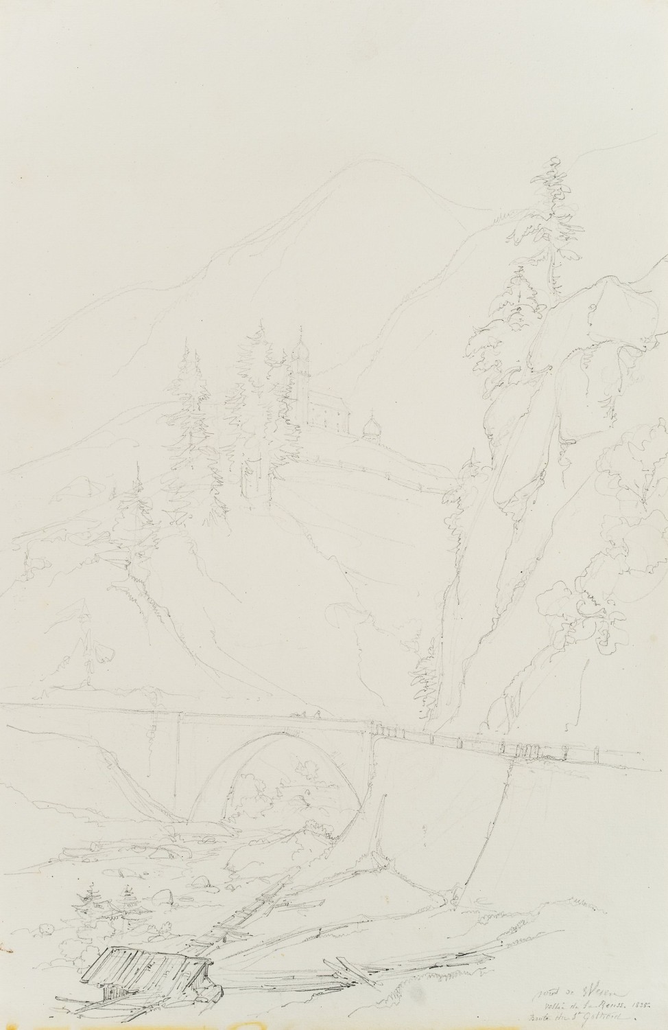 Edmond de Bretenières (1804 Dijon – 1882 ibid.), Bridge in the Reuss Valley near Wassen on the Gotthard Pass, Journey to Switzerland, Sketchbook, 1835, Pencil