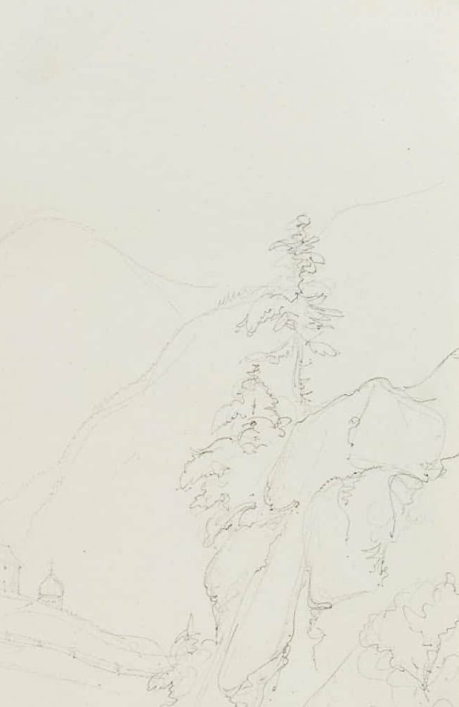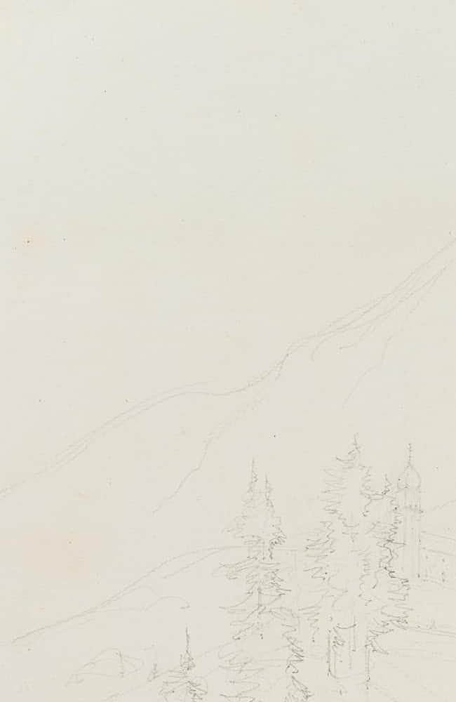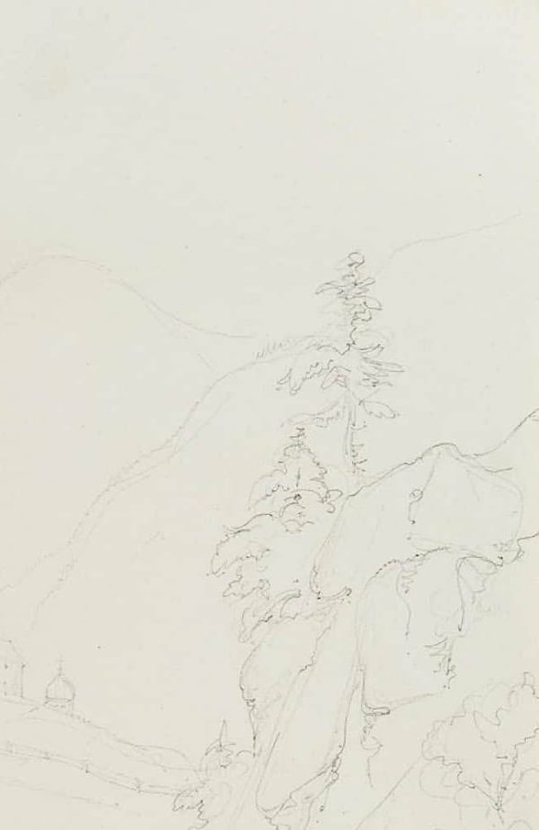 Aus einem Sammelalbum mit Reiseskizzen des Künstlers. “Esquisses faites par le Baron Edmond de Bretenières feudant les voyages en Suisse” (Skizzen, die Baron Edmond de Bretenieres während seiner Reisen in der Schweiz angefertigt hat). | Wasserzeichen: Wappen und “RIVES”