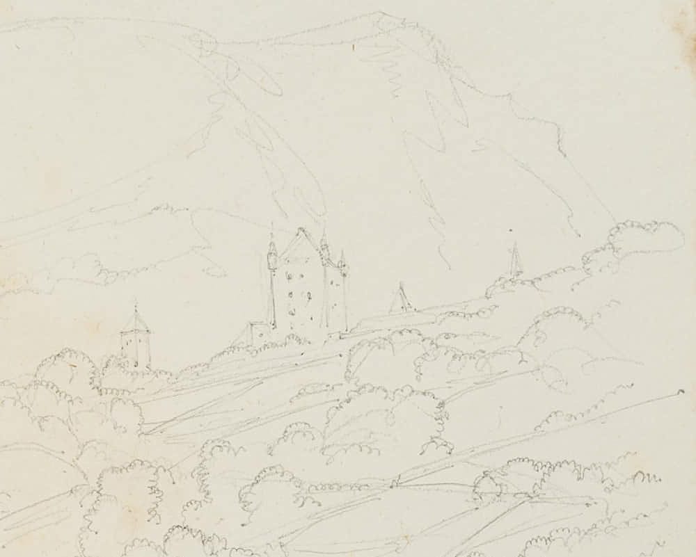 Aus einem Sammelalbum mit Reiseskizzen des Künstlers. “Esquisses faites par le Baron Edmond de Bretenières feudant les voyages en Suisse” (Skizzen, die Baron Edmond de Bretenieres während seiner Reisen in der Schweiz angefertigt hat).