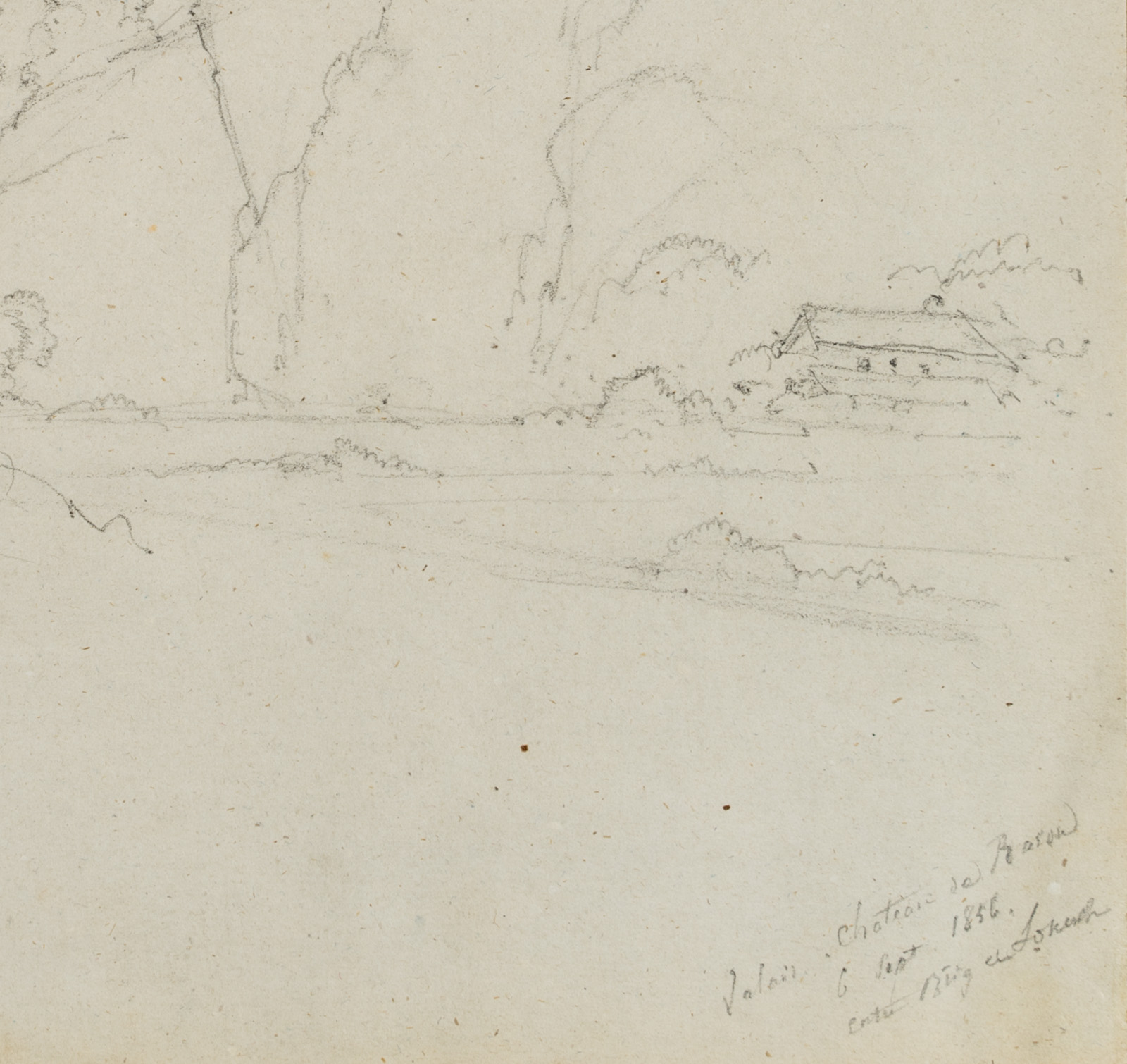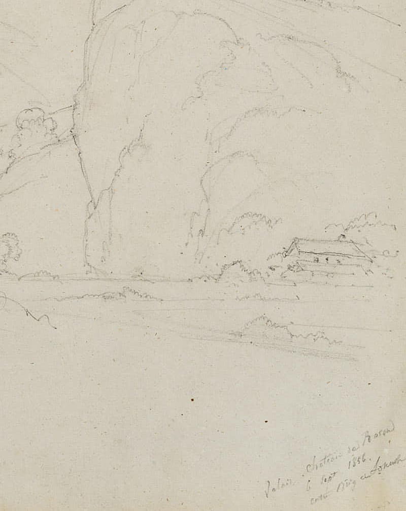 From a scrapbook with travel sketches by the artist. “Esquisses faites par le Baron Edmond de Bretenières feudant les voyages en Suisse” (Sketches made by Baron Edmond de Bretenieres during his travels in Switzerland).