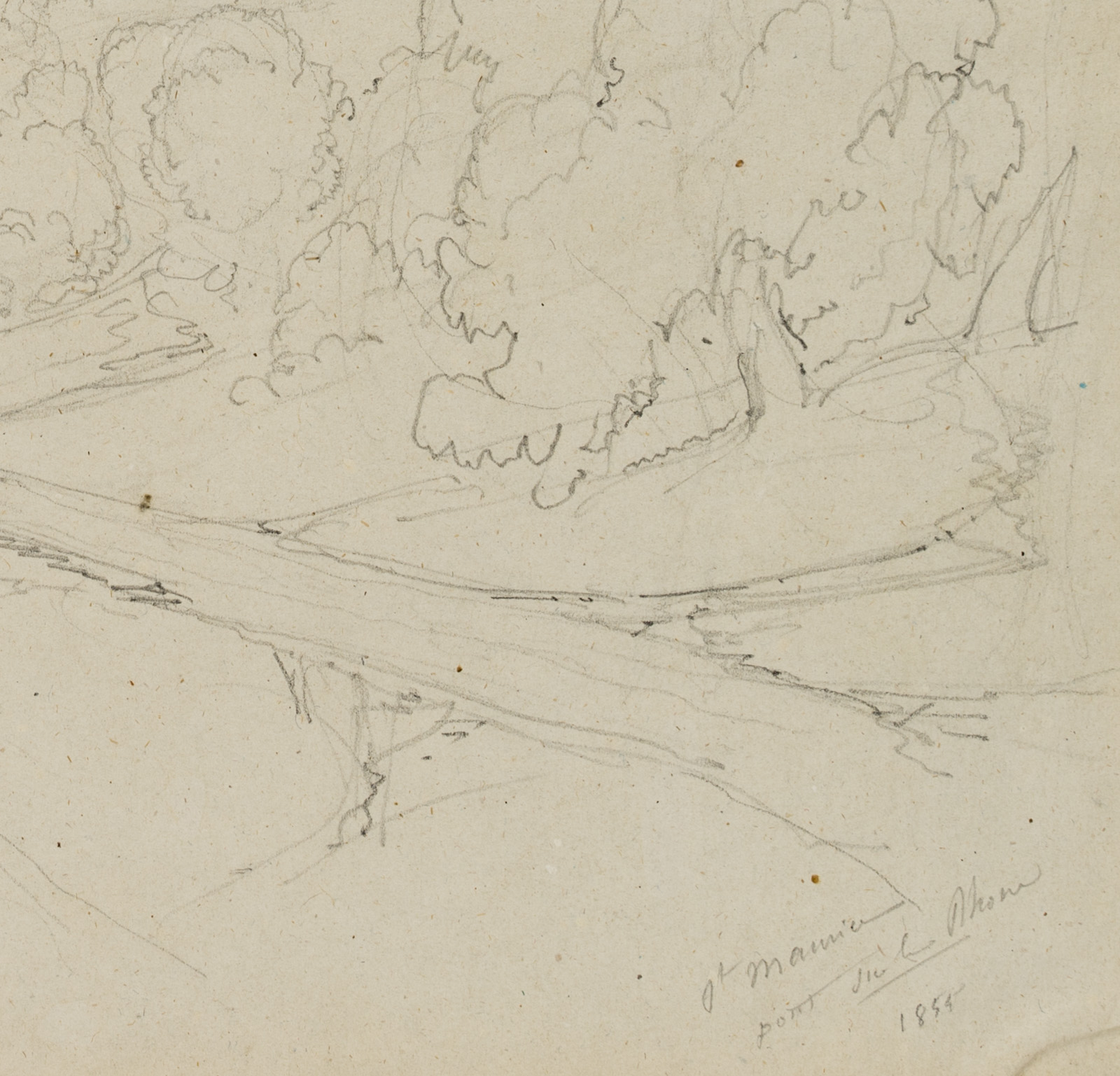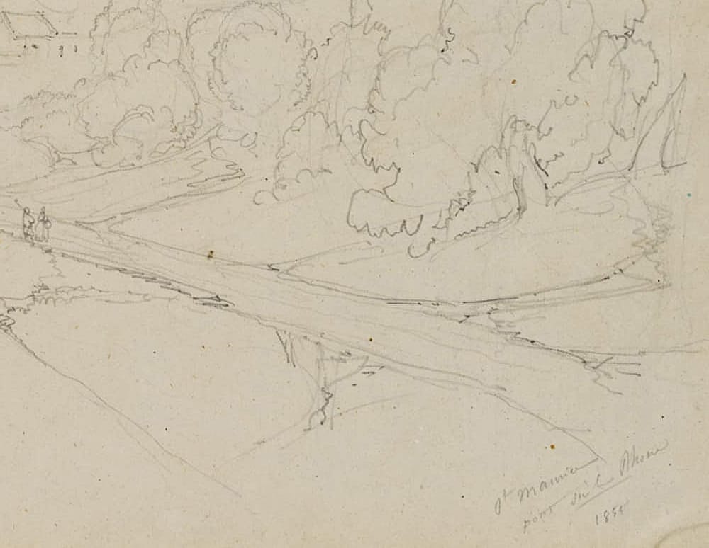 Edmond de Bretenières (1804 Dijon – 1882 ibid.), Road and wooded slope near Château Saint-Maurice with Rhone Bridge in the Canton of Valais, Journey to Switzerland, Sketchbook, 1855, Pencil