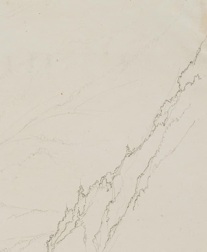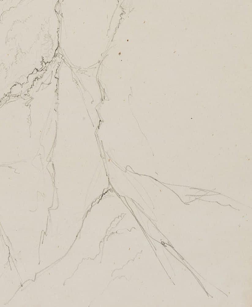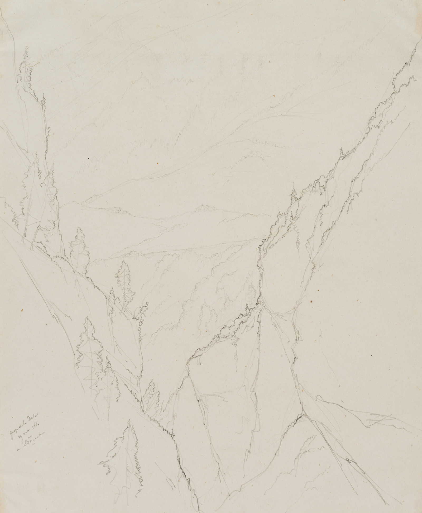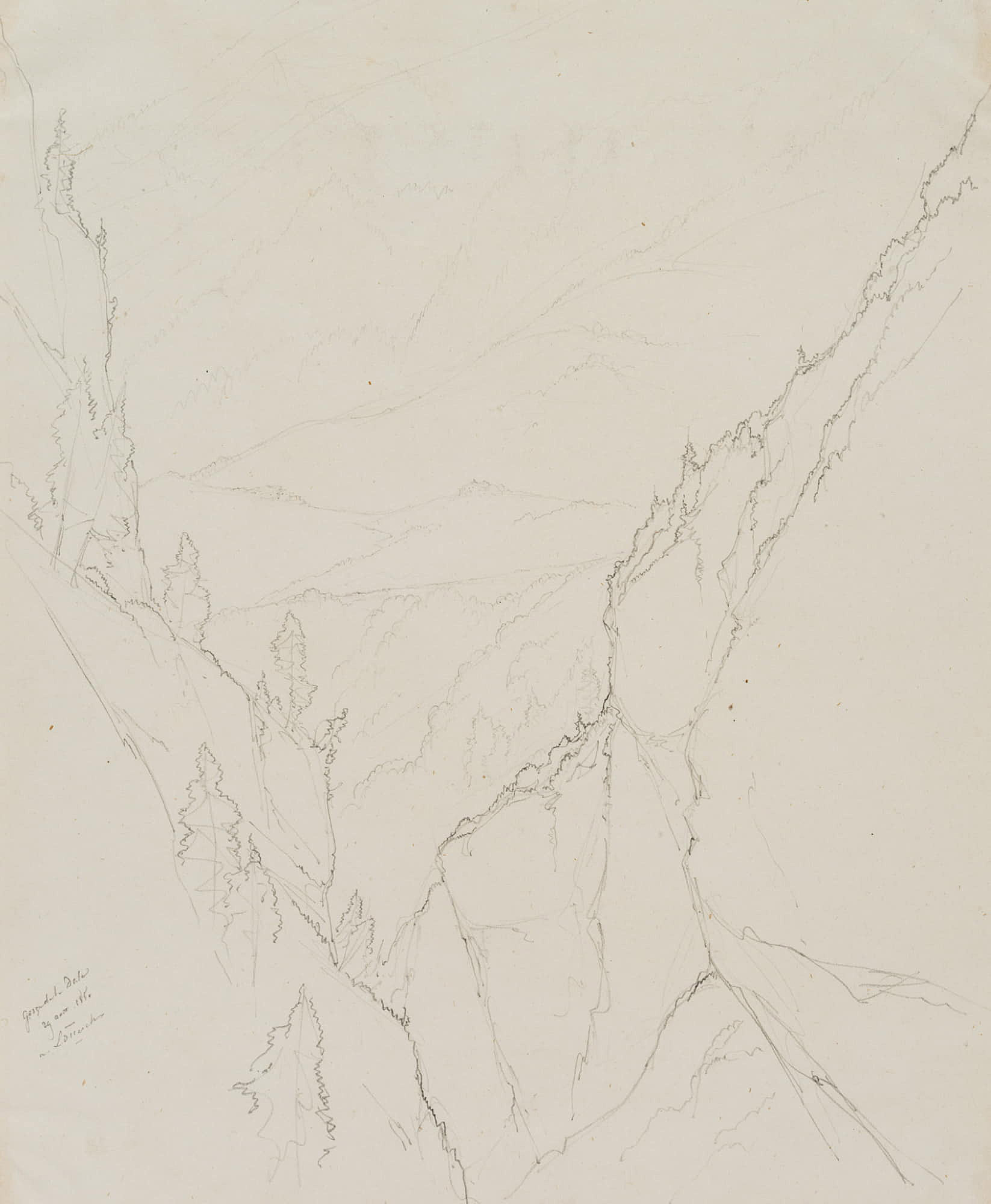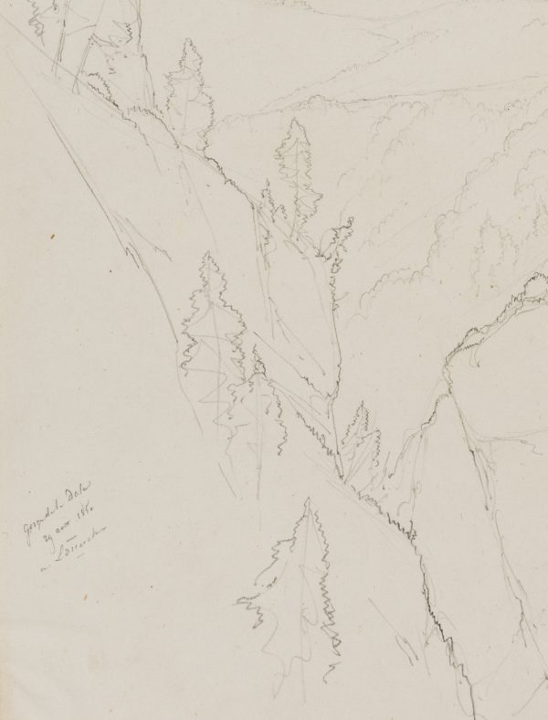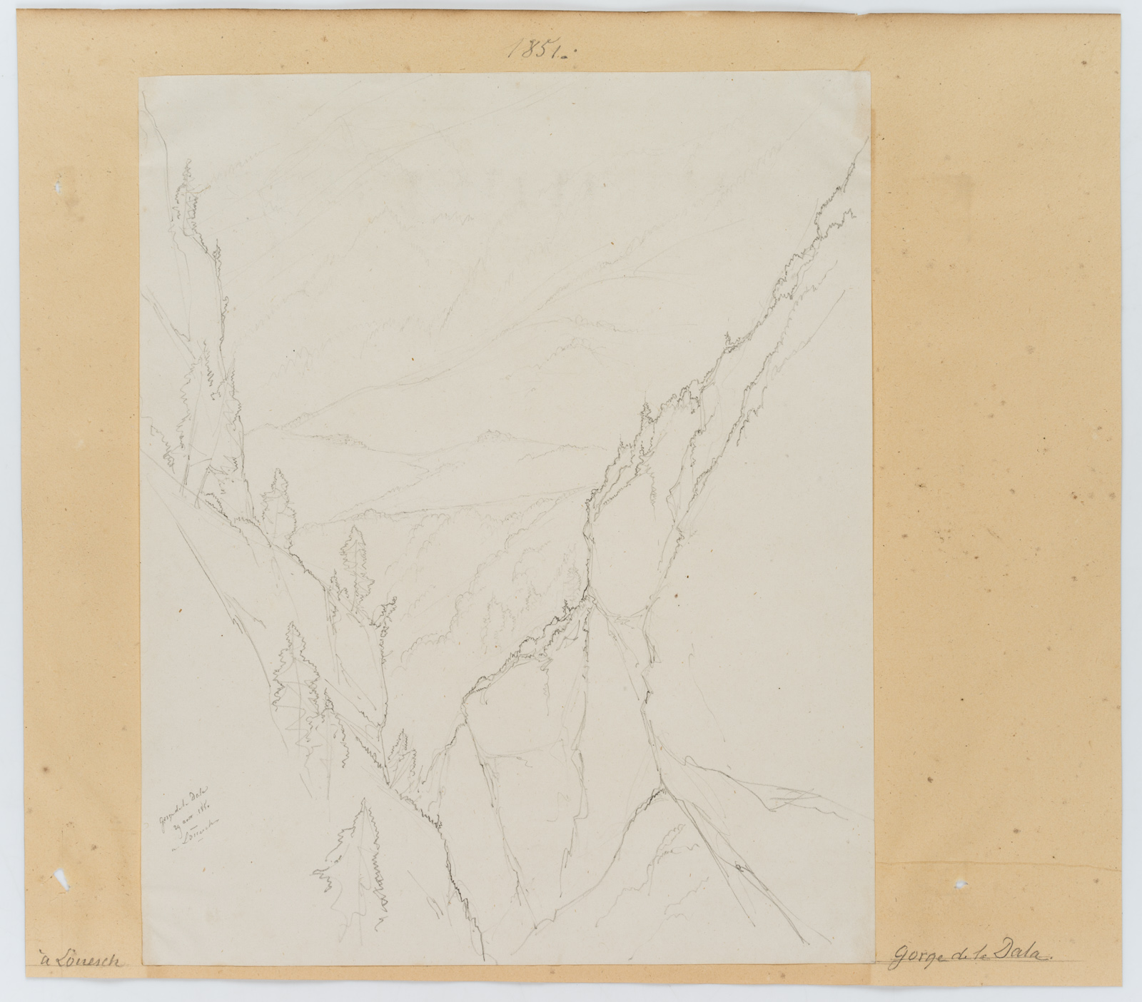 Edmond de Bretenières (1804 Dijon – 1882 ibid.), Dala Gorge near Leuk in the Canton of Valais, Loéche, Leigg, “Gorge de la Dala à Louesch”, Journey to Switzerland, Sketchbook, 1851, Pencil