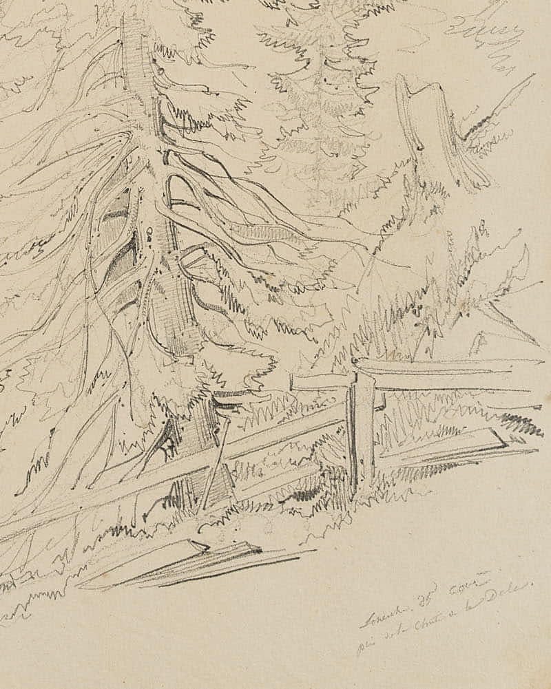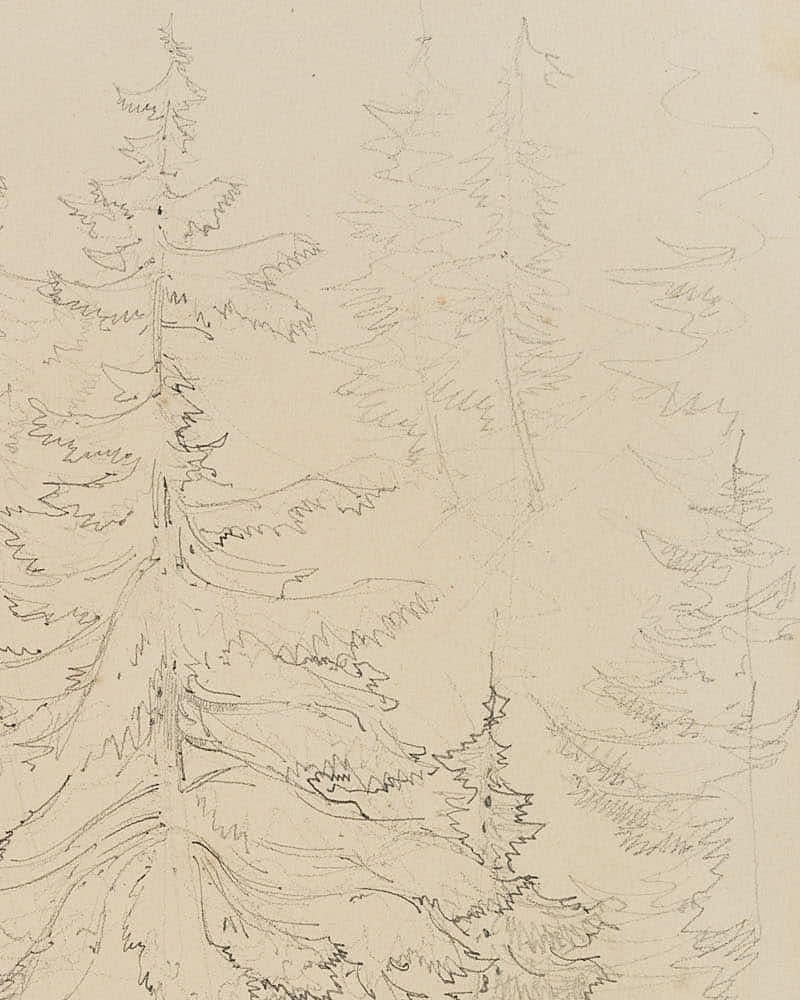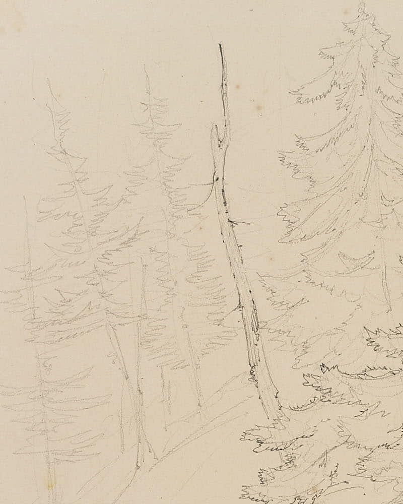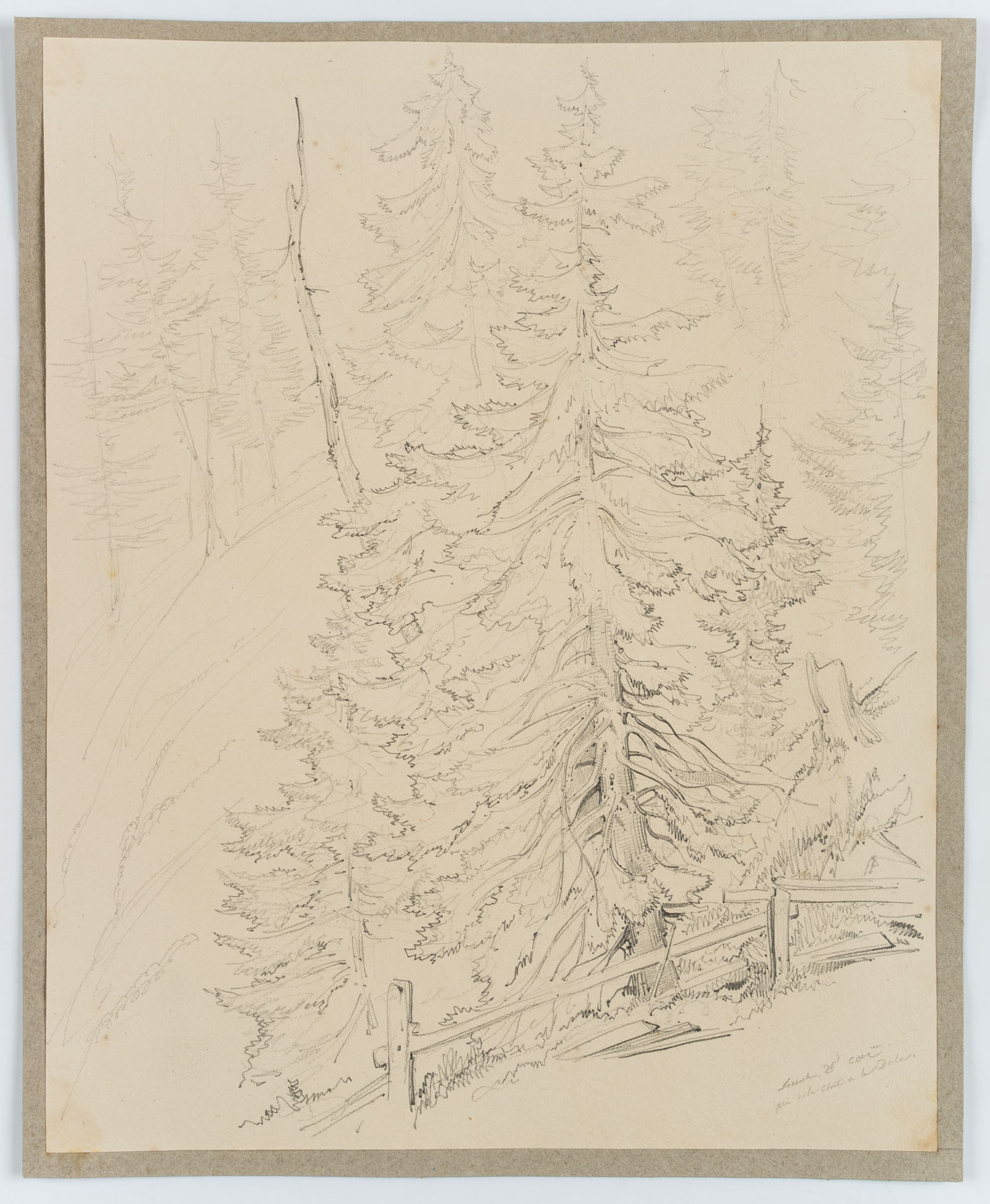 Edmond de Bretenières (1804 Dijon – 1882 ebd.), Fichte am Berghang, Reise in die Schweiz, Skizzenbuch, 19. Jahrhundert, Bleistift