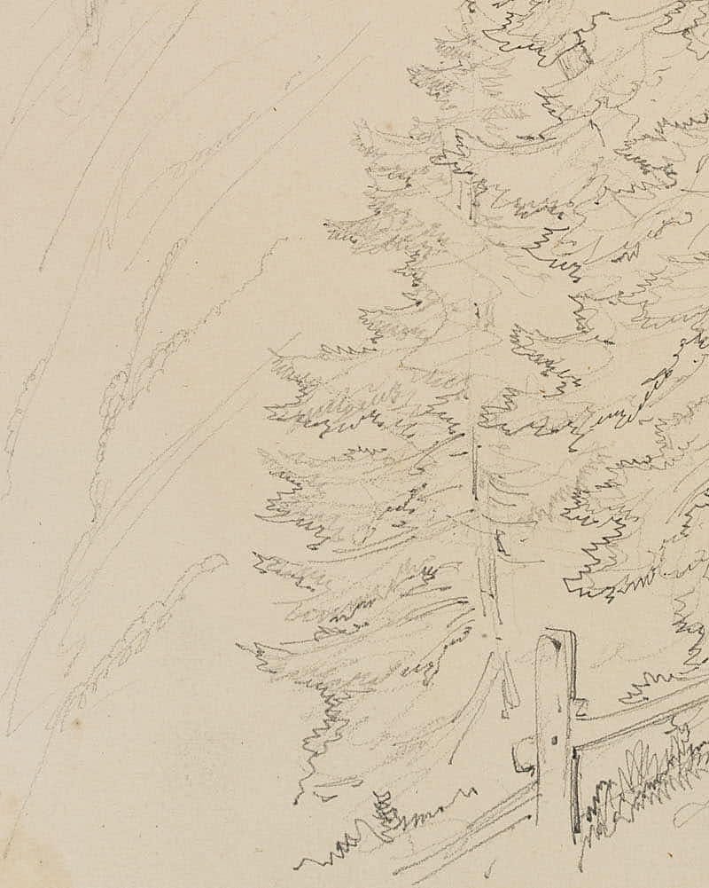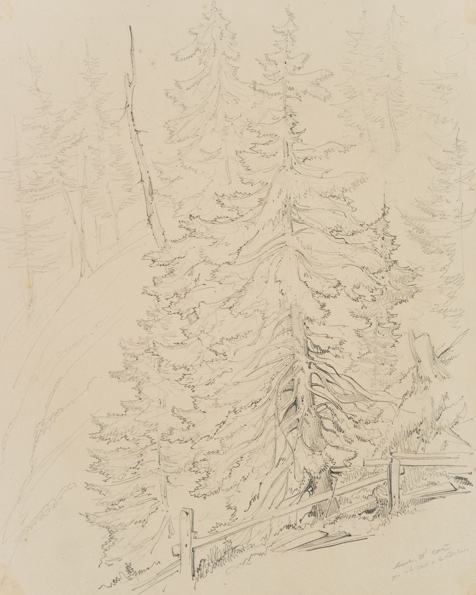 Edmond de Bretenières (1804 Dijon – 1882 ibid.), Spruce on a Mountain Slope, Journey to Switzerland, Sketchbook, 19th century, Pencil