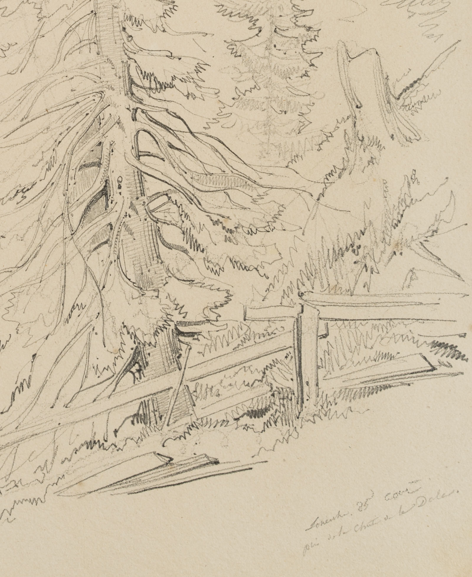 From a scrapbook with travel sketches by the artist. “Esquisses faites par le Baron Edmond de Bretenières feudant les voyages en Suisse” (Sketches made by Baron Edmond de Bretenieres during his travels in Switzerland).