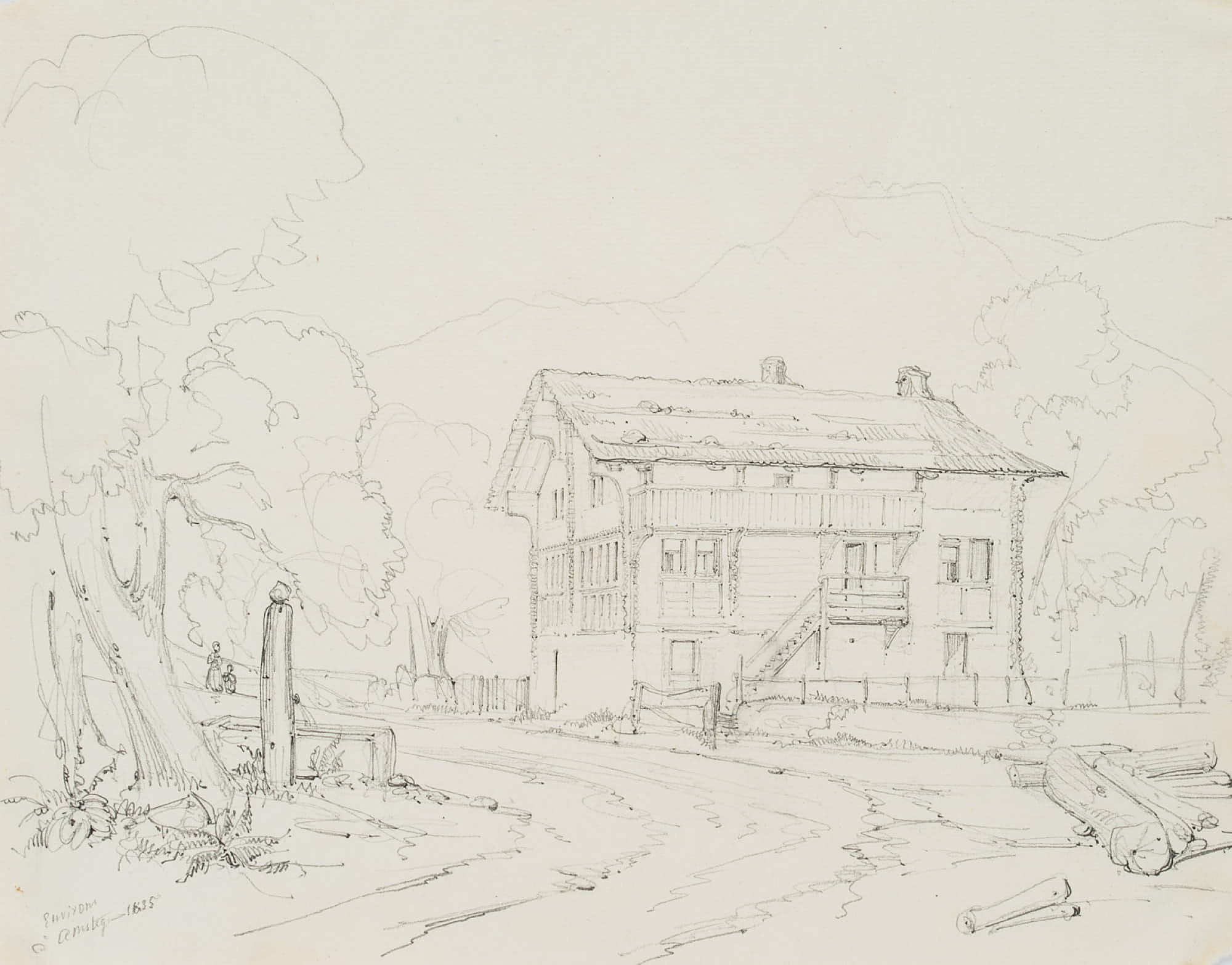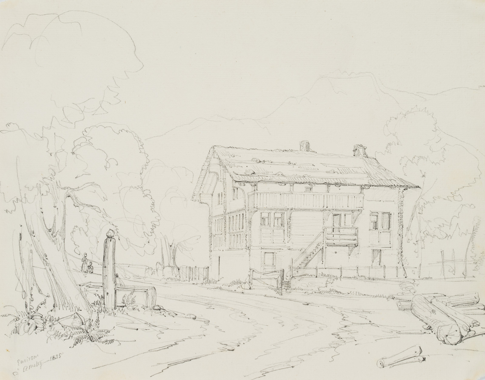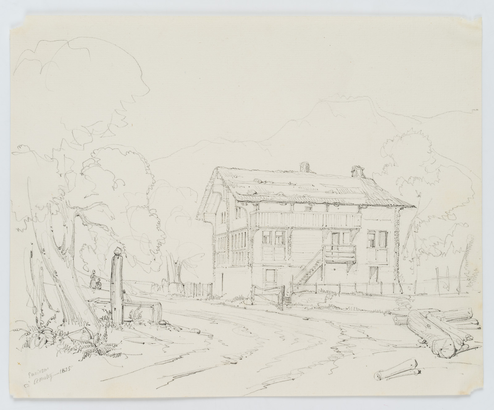 Edmond de Bretenières (1804 Dijon – 1882 ibid.), Inn near Amsteg on the Gotthard Pass in the canton of Uri, Journey to Switzerland, Sketchbook, 1835, Pencil