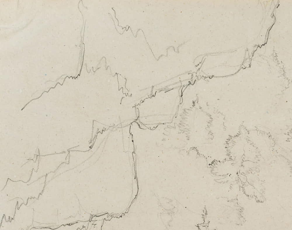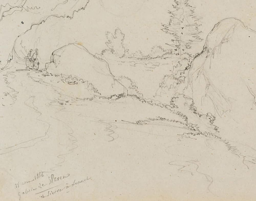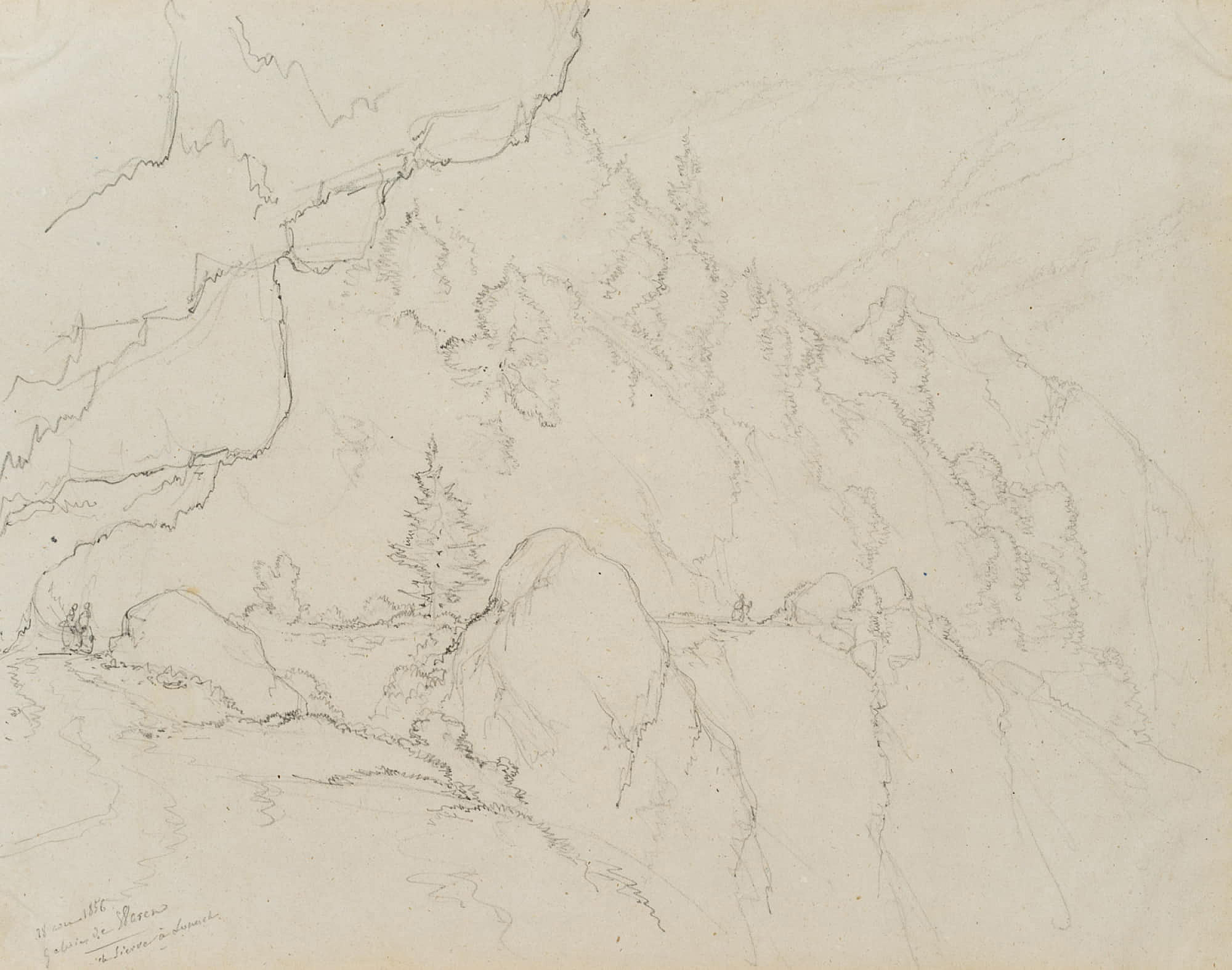 From a scrapbook with travel sketches by the artist. “Esquisses faites par le Baron Edmond de Bretenières feudant les voyages en Suisse” (Sketches made by Baron Edmond de Bretenieres during his travels in Switzerland).